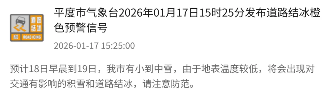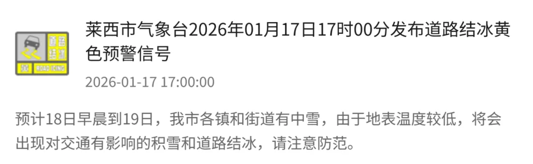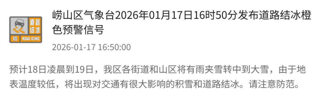 ✅城阳区发布道路结冰橙色预警、寒潮黄色预警: