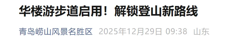 点击链接查看:青岛崂山华楼游步道正式启用!即日起至明年3月31日可免费游览!预约及游玩攻略→