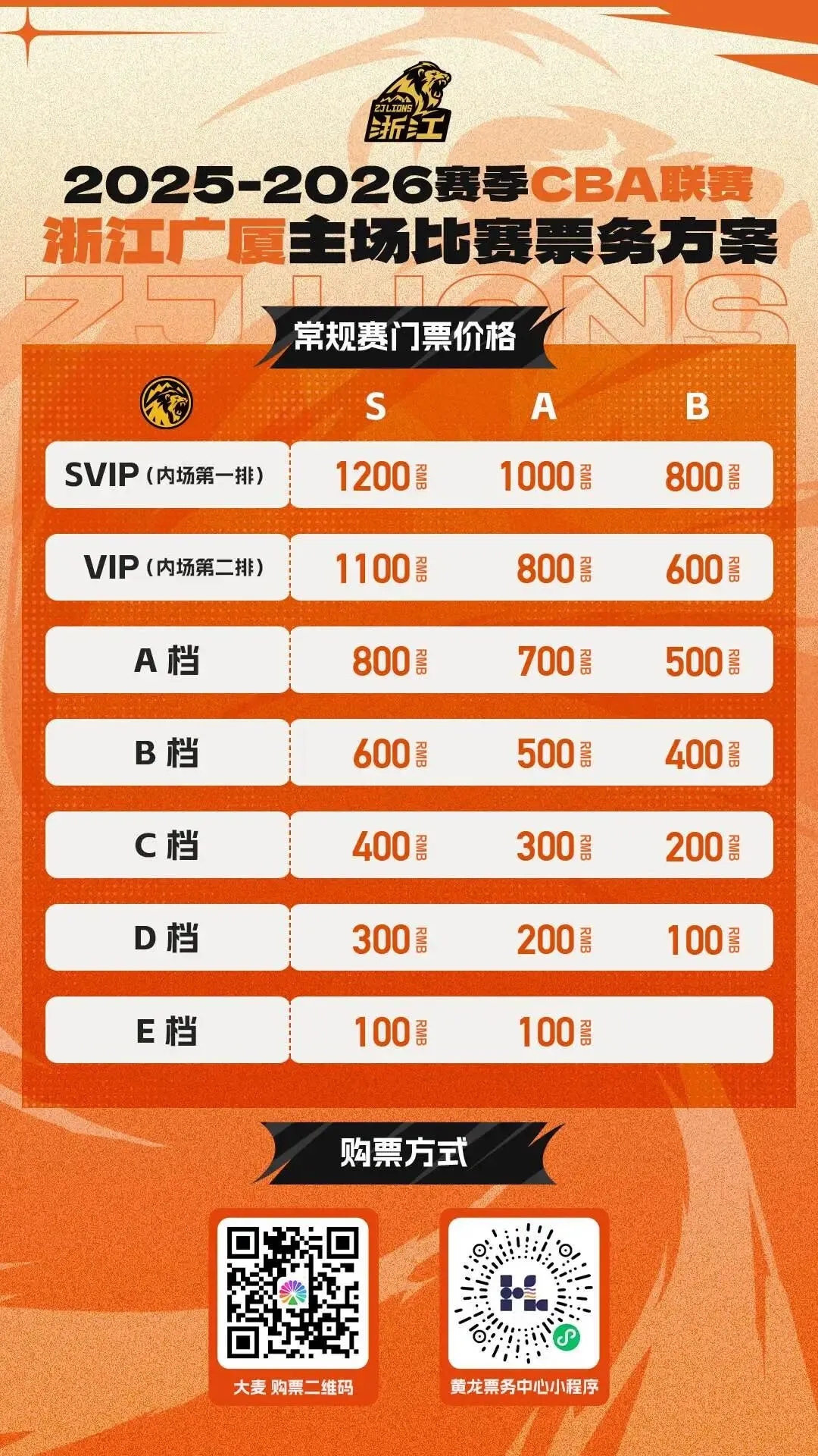 目前,1月19日对阵青岛男篮的球票正在大麦app及黄龙票务小程序热卖中,球迷朋友们可自行选择票务平台购买。