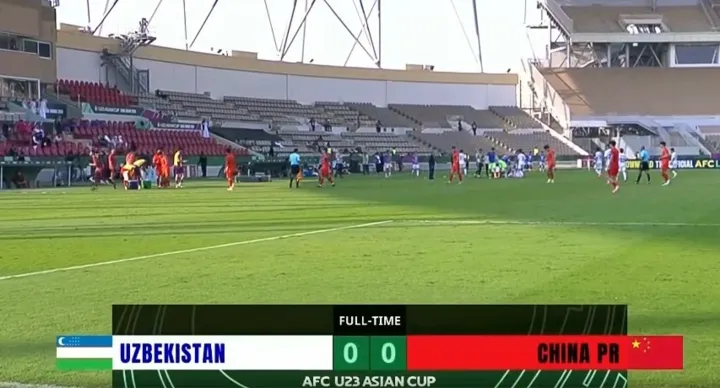 点球大战,中国队先罚,刘浩帆站上点球点,稳稳命中!中国队1比0领先。乌兹别克斯坦队也罚进,1比1平。