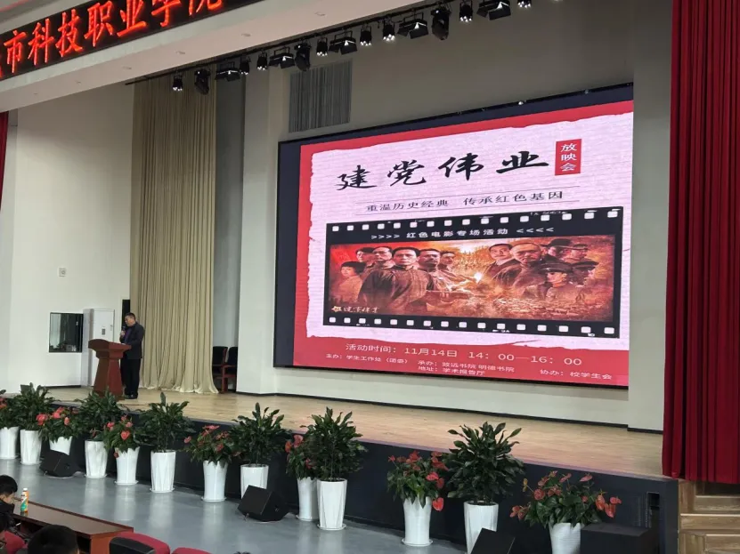 为扎实有效地开展党史学习教育,进一步汲取奋进力量,烟台城市科技职业学院于11月 14日在学术报告厅观看党史学习教育电影《建党伟业》,一同重温光辉党史,感受红色精神,领悟初心使命。此次活动由学生工作处(团委)主办,明德书院、致远书院承办,校学生会协办。
