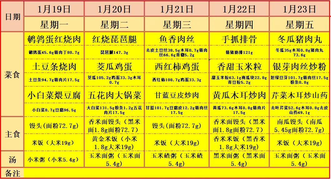 青岛培文学校第21周食谱(2026.1.19-2026.1.25)