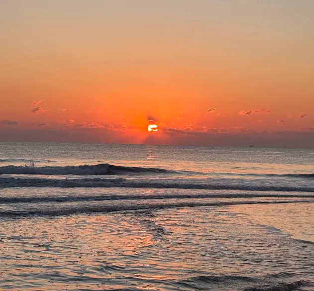 阳光先照,金沙细软,海风里没有急躁的腥气,只有淡淡的茶香。
