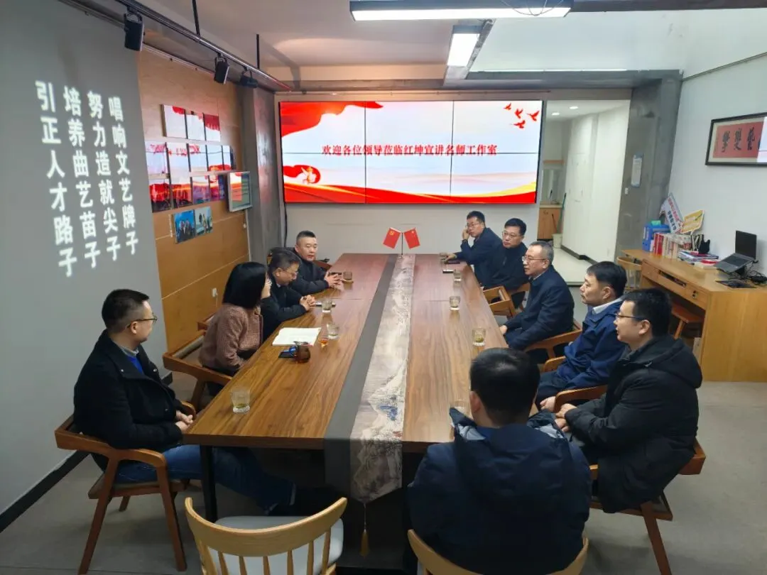 1月15日上午,山东省烟台市委宣传部副部长孙兴华一行率队来甬,围绕“党的基层理论宣讲”开展调研,实地参观调研红坤宣讲名师工作室。宁波市委宣传部理论处处长康弘磊、鄞州区宣传部副部长忻春意、百丈街道宣传统战委员徐光远等陪同调研。