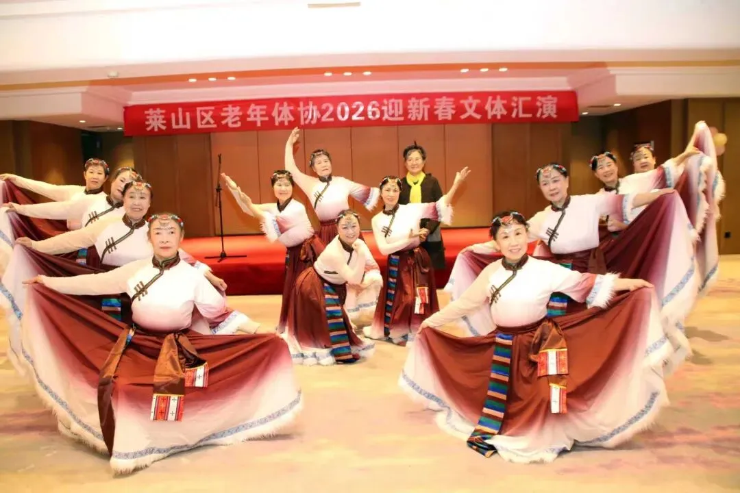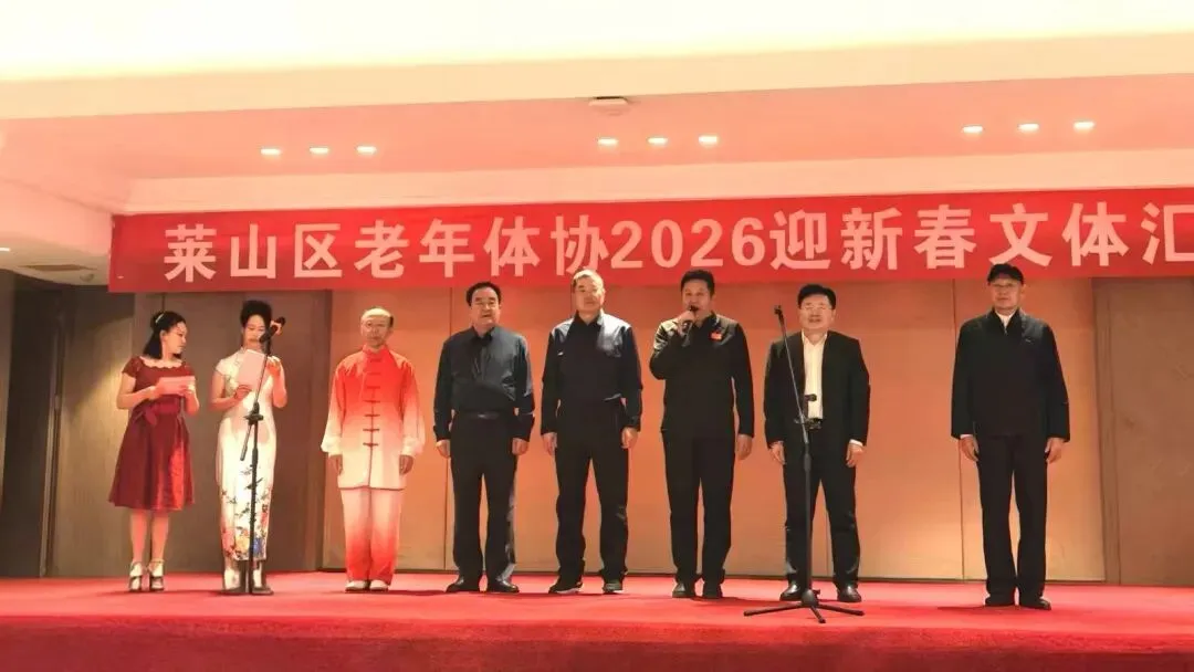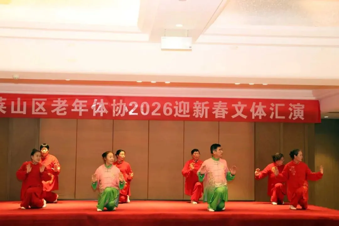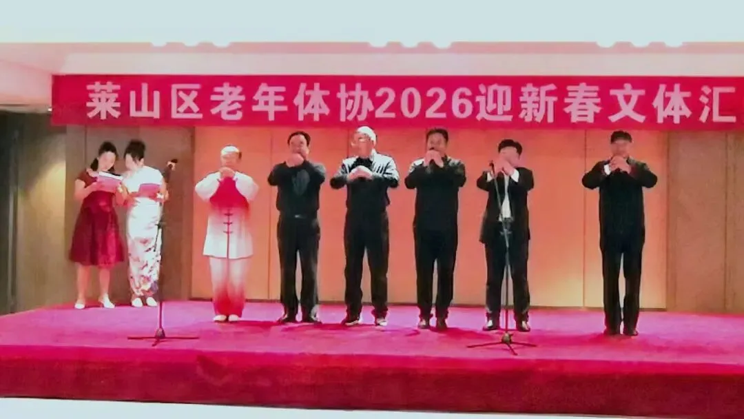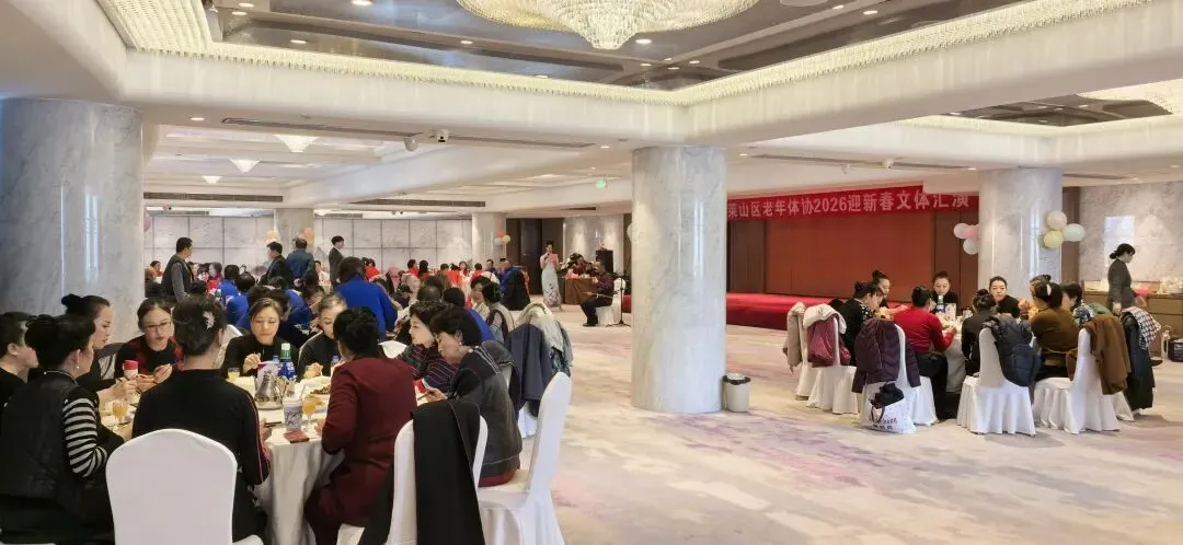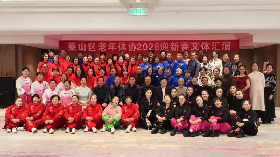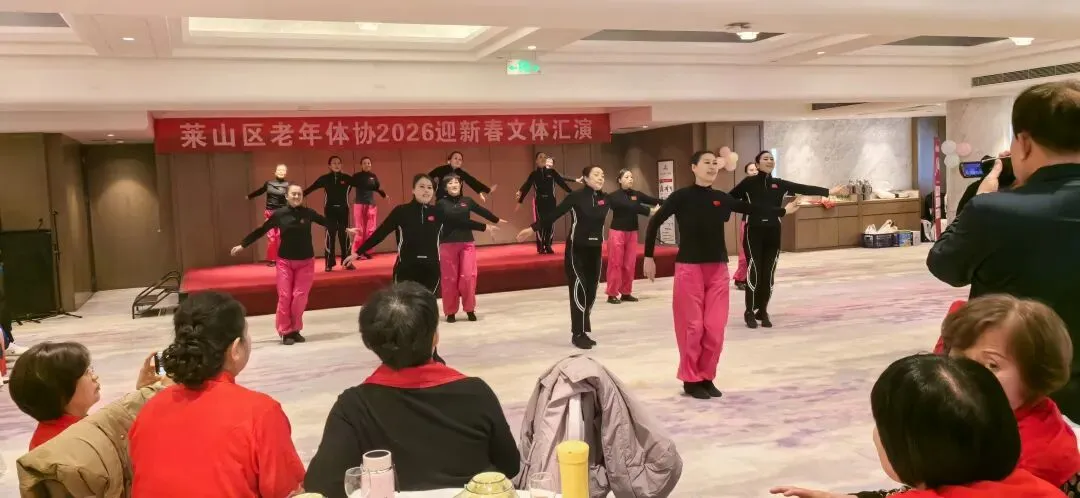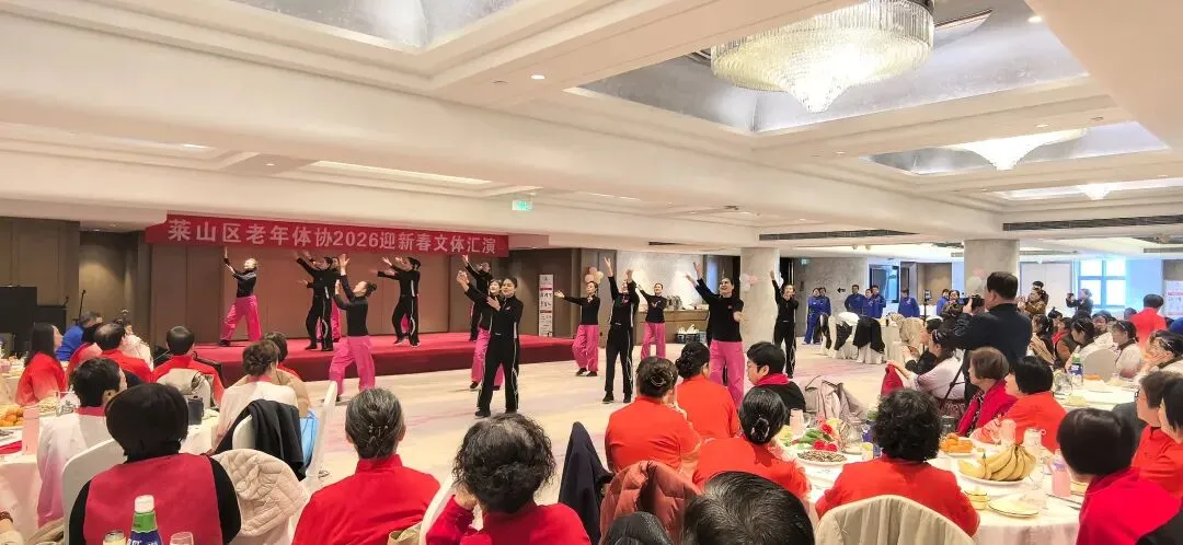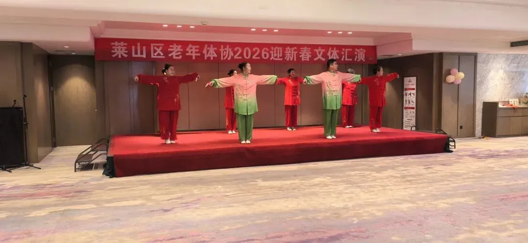 2026年1月15日上午9点半,由烟台市莱山区体育运动服务中心、莱山区老年体协共同举办,老年体协健身气功和健身操舞专项队联合承办的“莱山区老年体协2026迎新春文体汇演”在孚利泰大酒店三楼举行。来自学府小区舞蹈队、区操舞鼓骨干队、区健身气功骨干队及站点、模特队及太极拳专委、门球专委的120余人参加了演出活动,90多人参加了午宴活动。