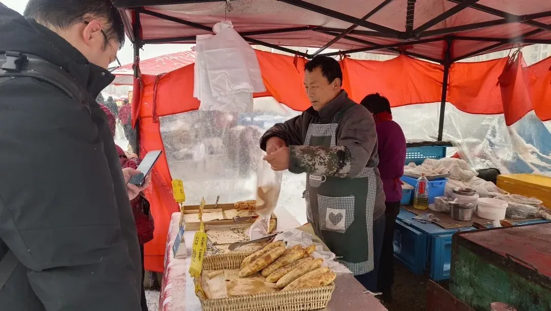 >烟台,下雪天,赶大集;吃烧饼,喝羊汤!