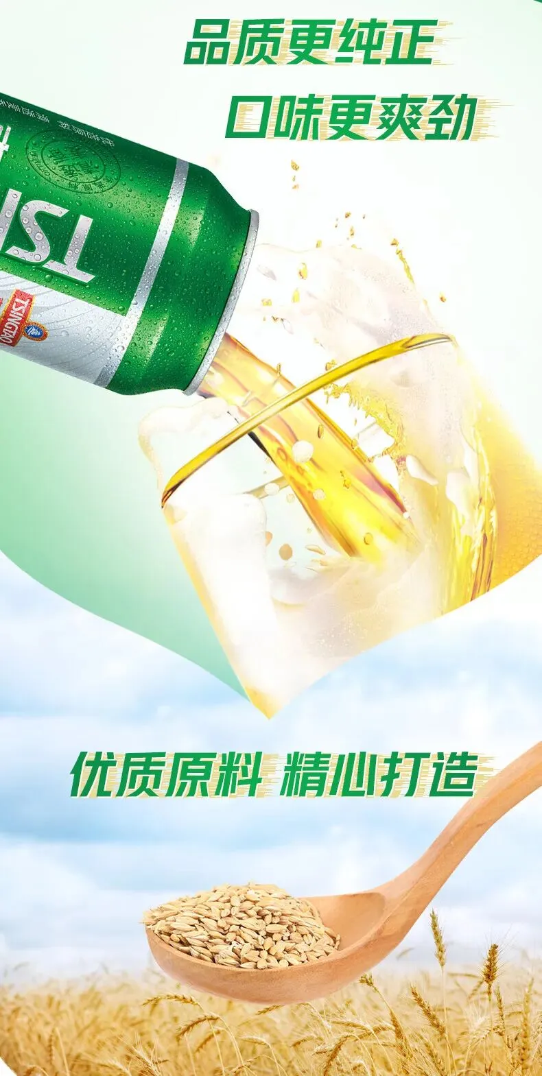 青岛啤酒(TsingTao)清爽系列原麦汁浓度8°P听装罐装啤酒 500mL 24罐 整箱装
