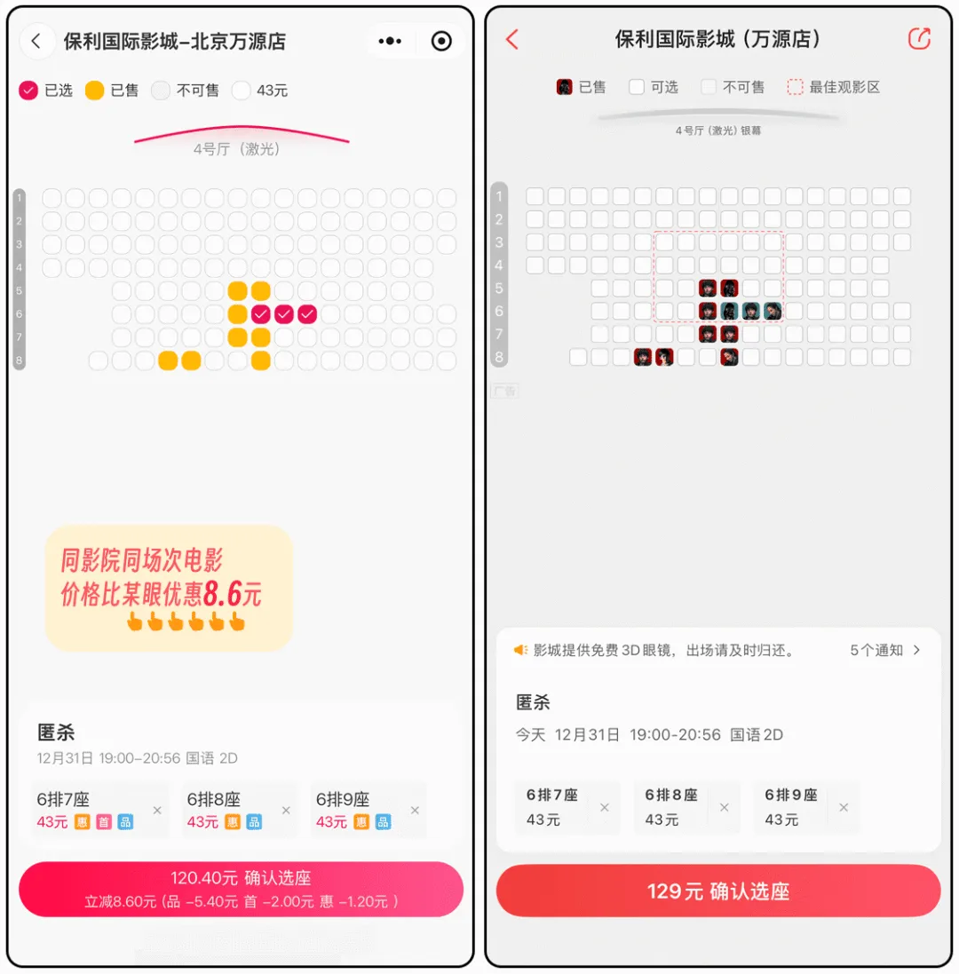 保利国际影城(万源店)×3张129元电影票品城卡立减8.6元