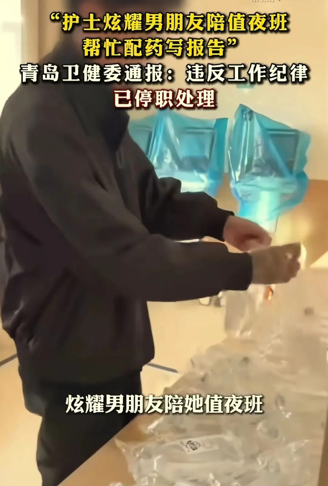 2026年元旦刚过,青岛一名女护士因为在社交平台发视频,把自己搞上了热搜。她原本是想秀恩爱,结果翻车翻得彻底。视频里,她男友穿着便服、手臂纹身,在医院的配药室里帮她贴输液标签、写护理记录,动作还挺熟练。关键是,这人根本没有医疗资格,连防护服都没穿。