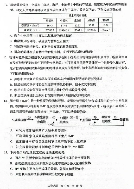 12.A项错误,碳在生物群落中主要以有机物的形式传递;B项错误,过熟林你很叛逆啊;D……幼龄林你除了能打过过熟林你还能干点啥?