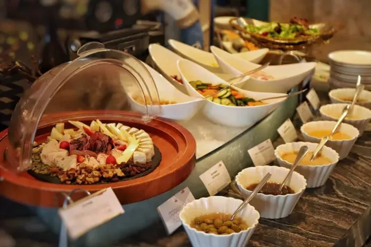 美食汇餐厅,环境豪华典雅,拥有开放式的厨房,提供丰盛的自助晚餐!荟萃当地海鲜、日本料理、特色烧烤、西式大菜、中式佳肴和甜品水果等,包含无限量特选葡萄酒、啤酒、果汁和软饮~