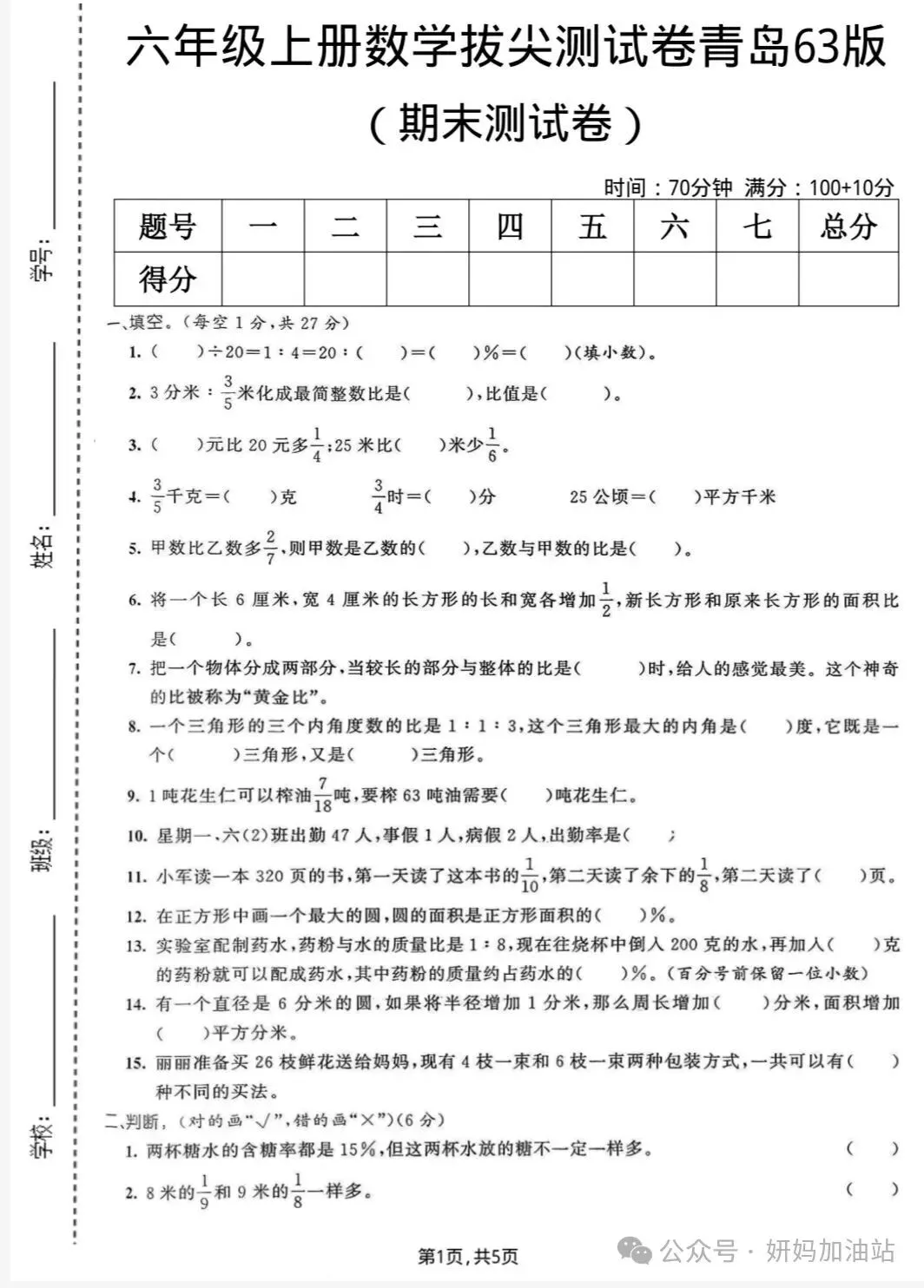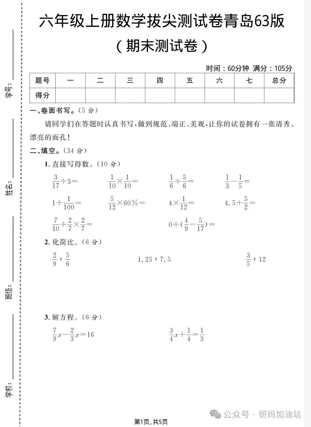 当前位置:首页>青岛>【青岛63版】25秋六年级上册数学《期末质量检测卷》(共3套)含答案电子版可打印下载!