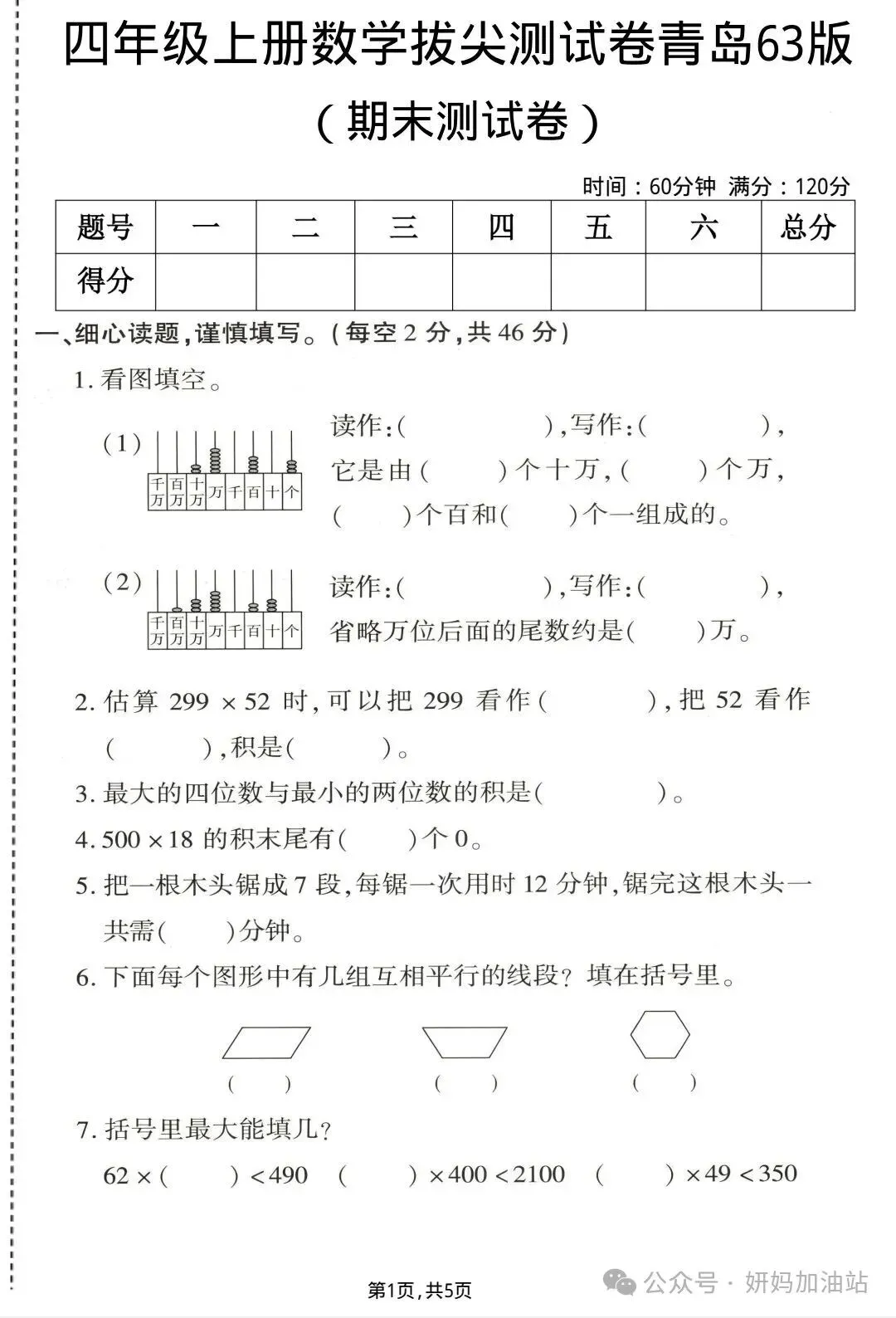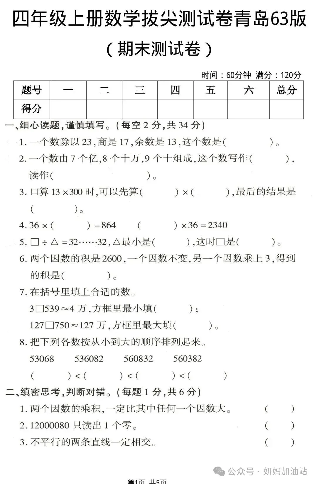 当前位置:首页>青岛>【青岛63版】25秋四年级上册数学《期末质量检测卷》(共5套)含答案电子版可打印下载!