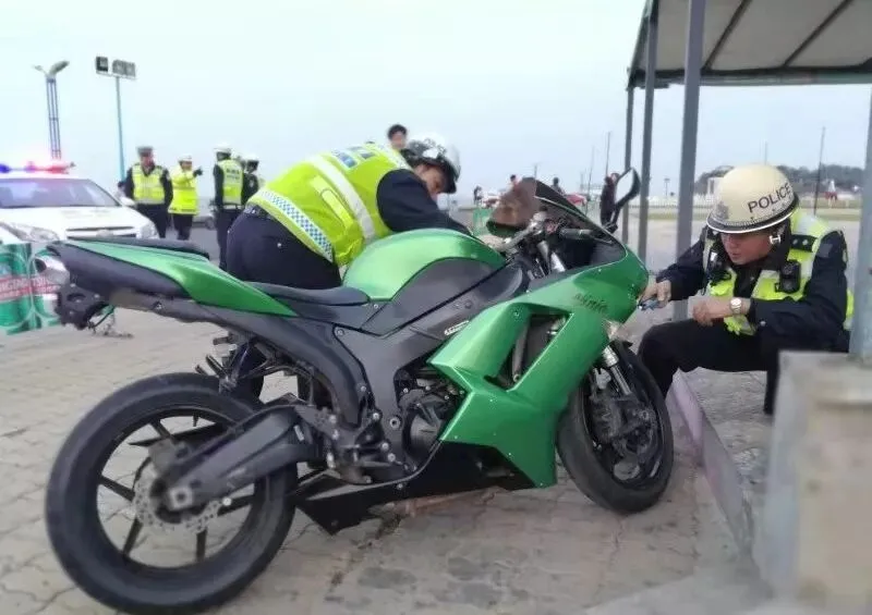 下午16时50分,大队民警经缜密部署查控,收集证据。此次行动中,共控制大排量摩托车3台,查扣无号牌摩托车1台。