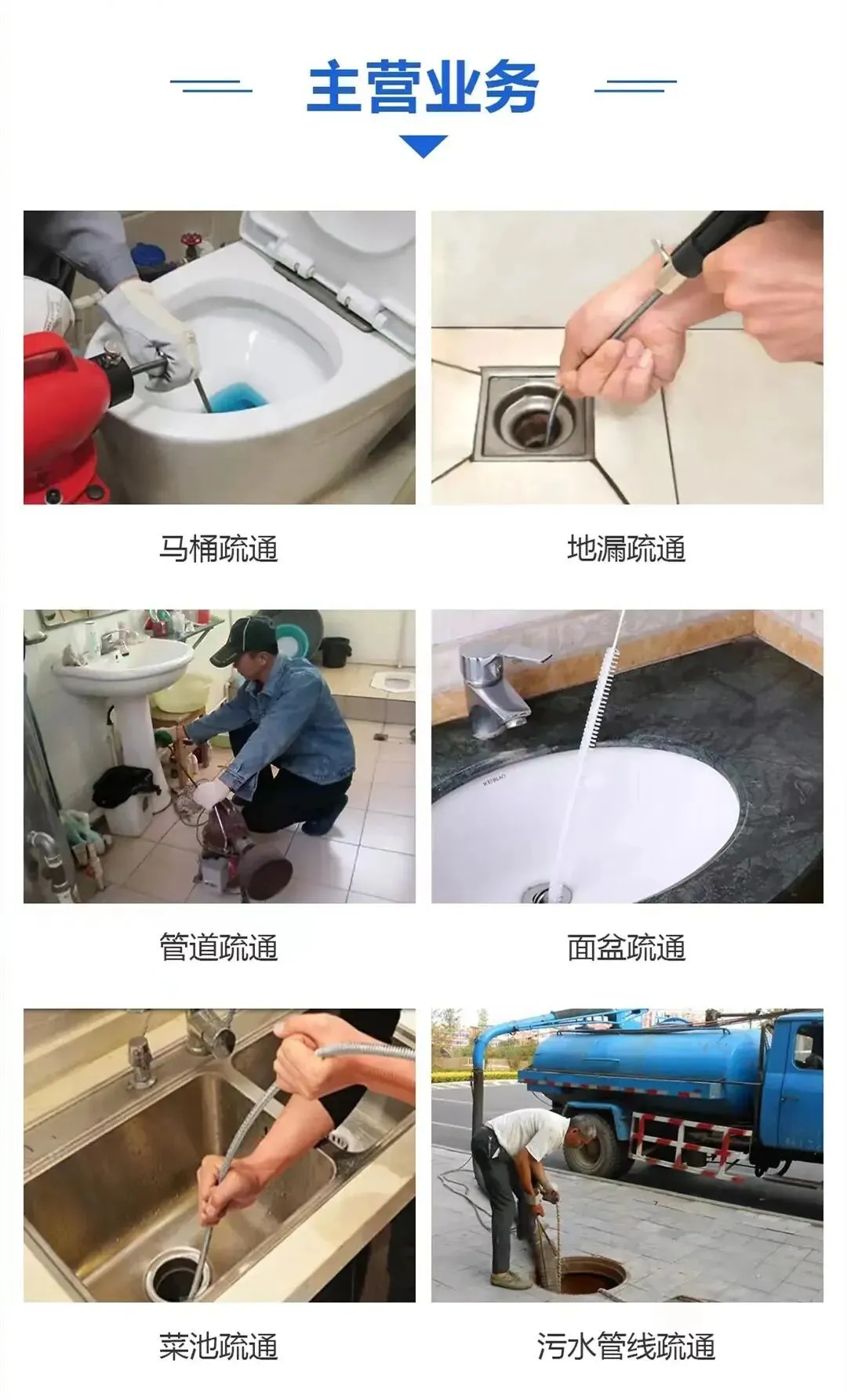 ✅ 家庭管道疏通:厨房下水道、洗手盆、马桶、卫生间管道堵塞等