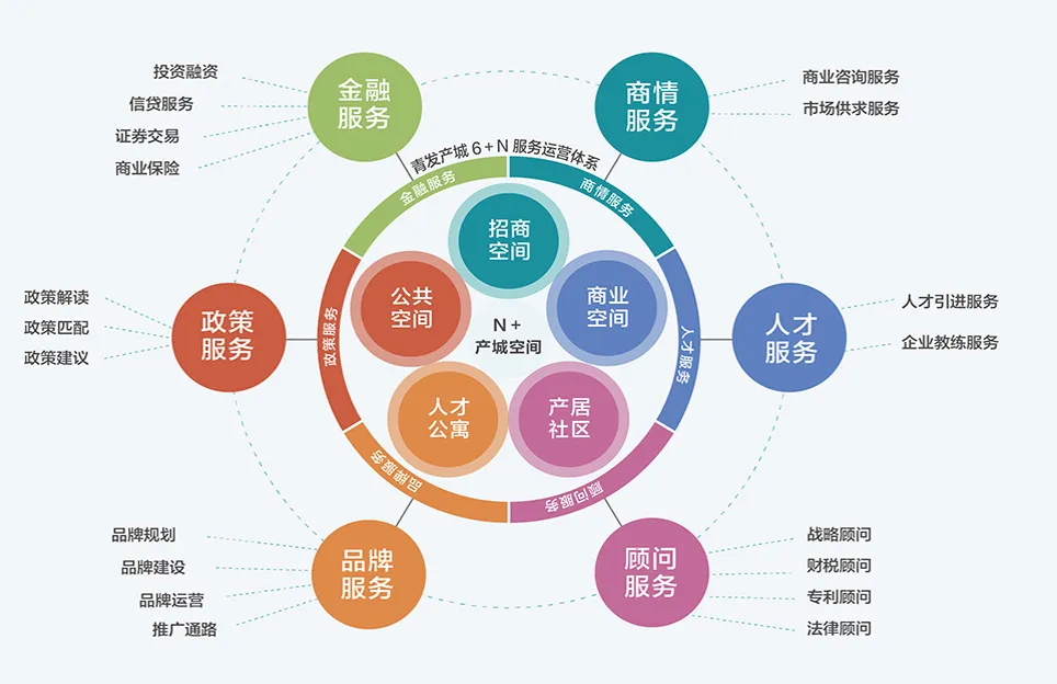 • 青发产城联合近100家专业机构,推出涵盖人才、服务、政策、场景、金融、资源六大赋能板块,以及零售、物流、设计、咨询等基础服务,赋能企业全生命周期发展。