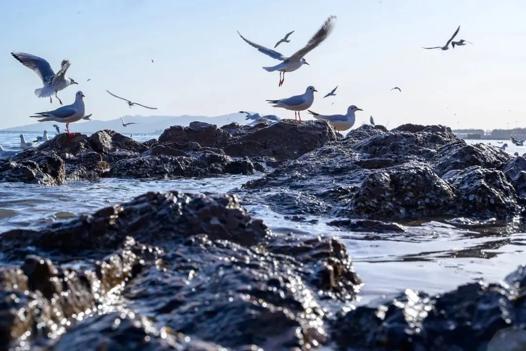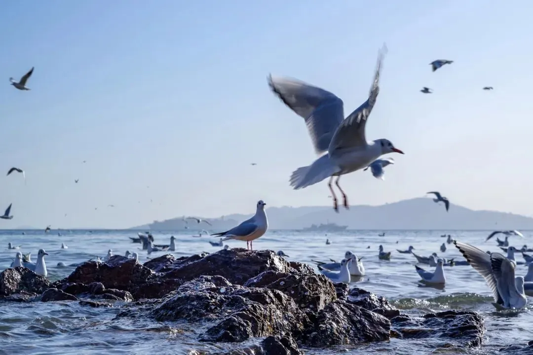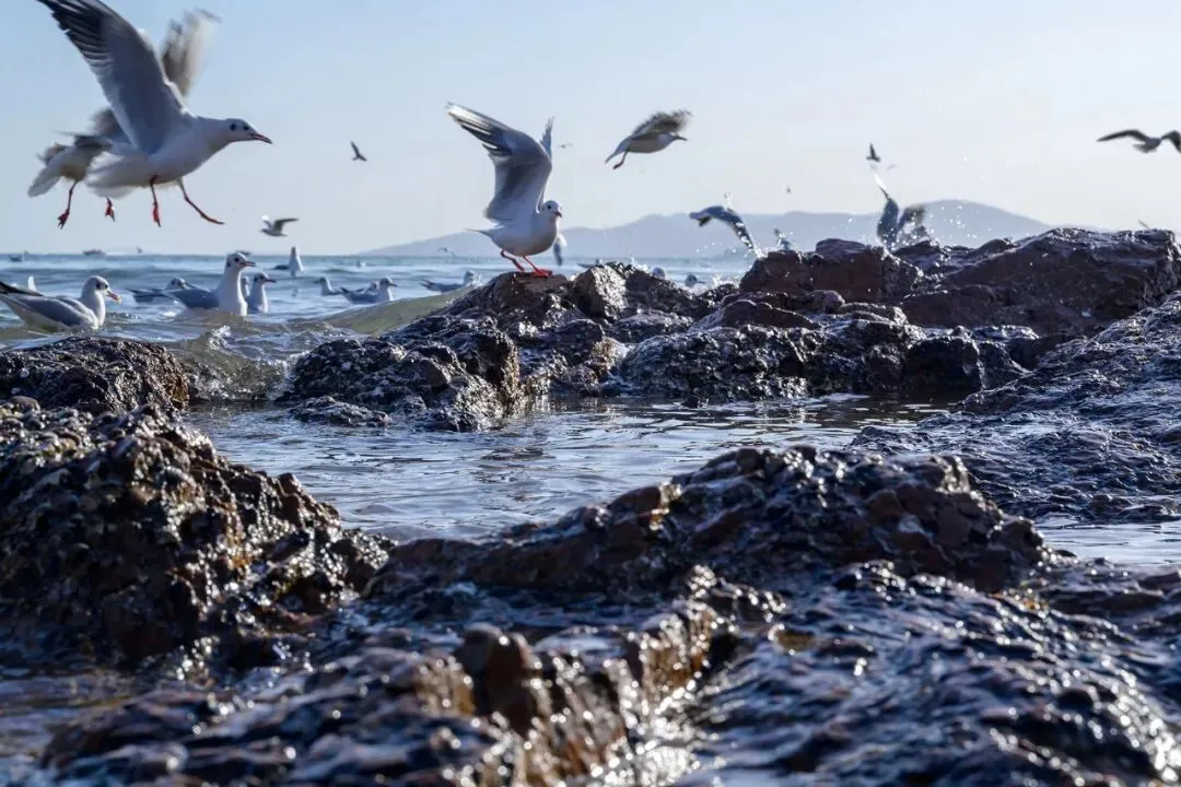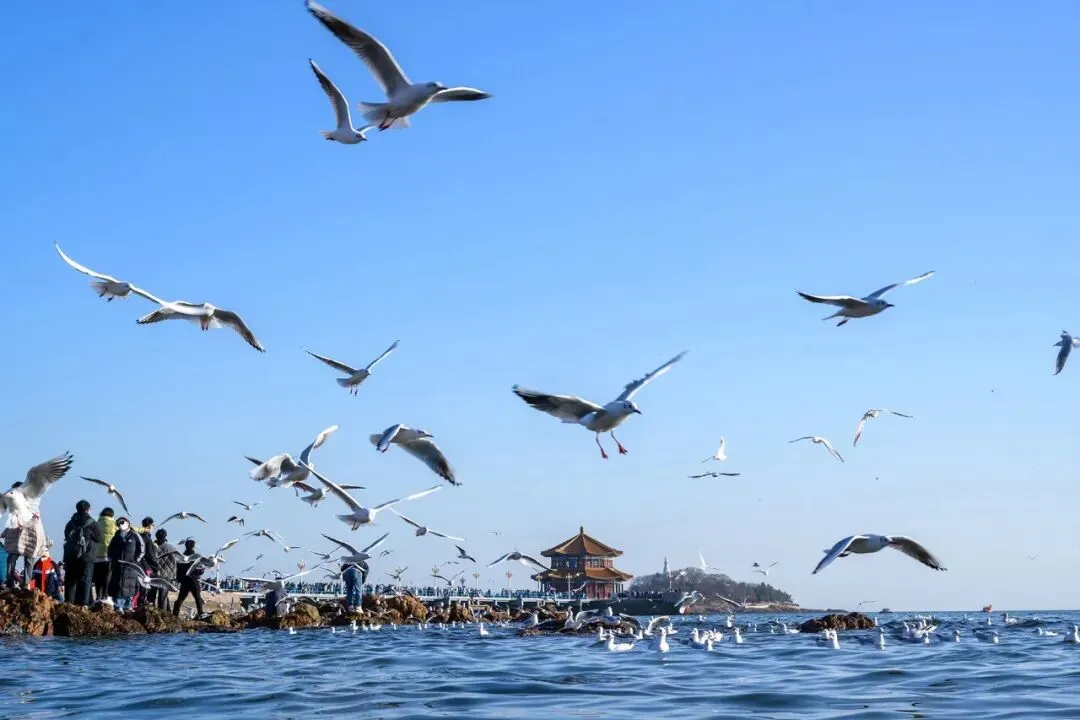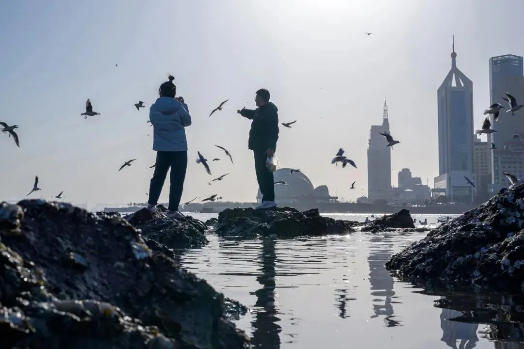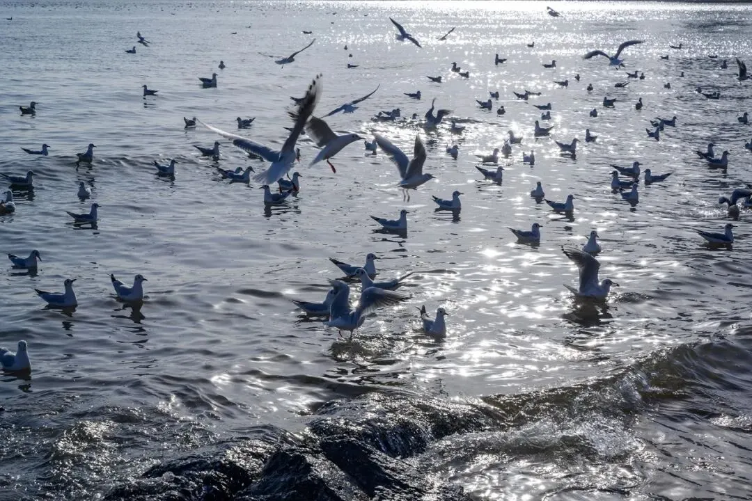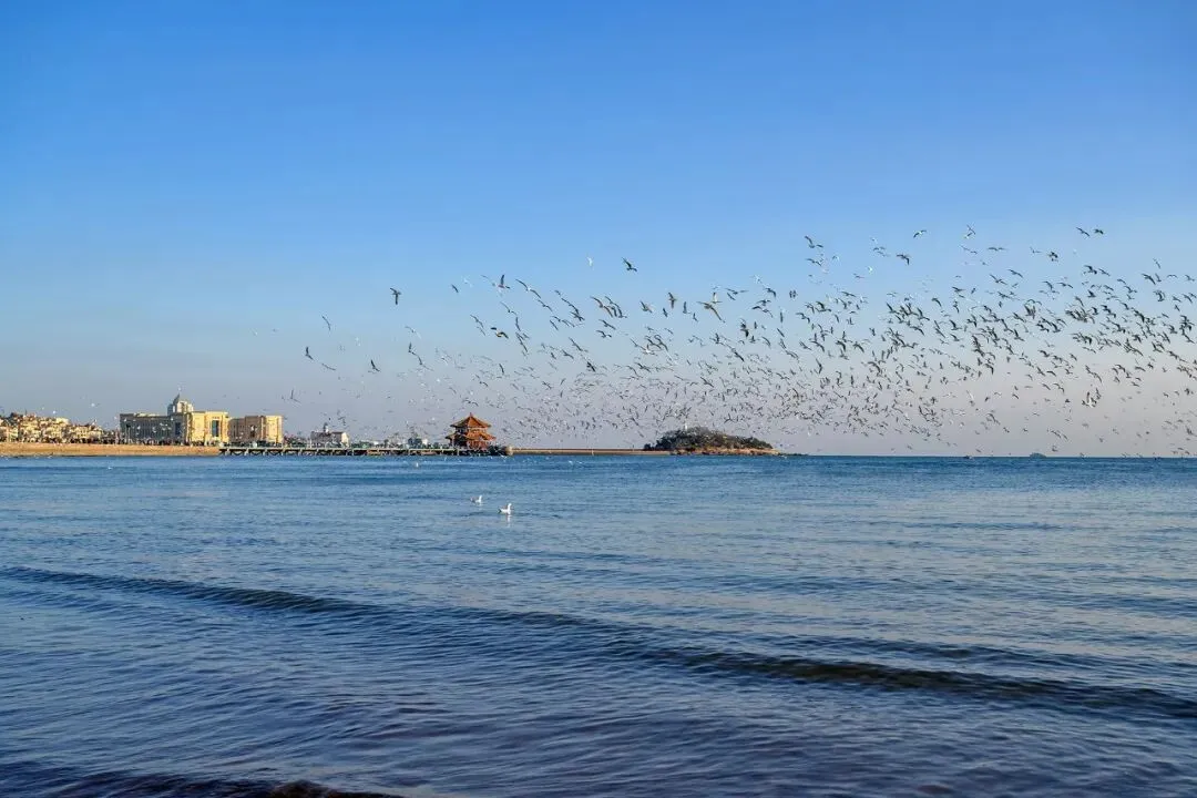 每年11月至次年3月,成千上万来自西伯利亚的海鸥会到青岛过冬,眼下正值海鸥聚集的高峰期。1994年起,青岛发起“挽留海鸥”行动,定时投喂饲料。当初,青岛湾仅约2000只红嘴鸥和银鸥,如今种群将近20个,数量超10万只。