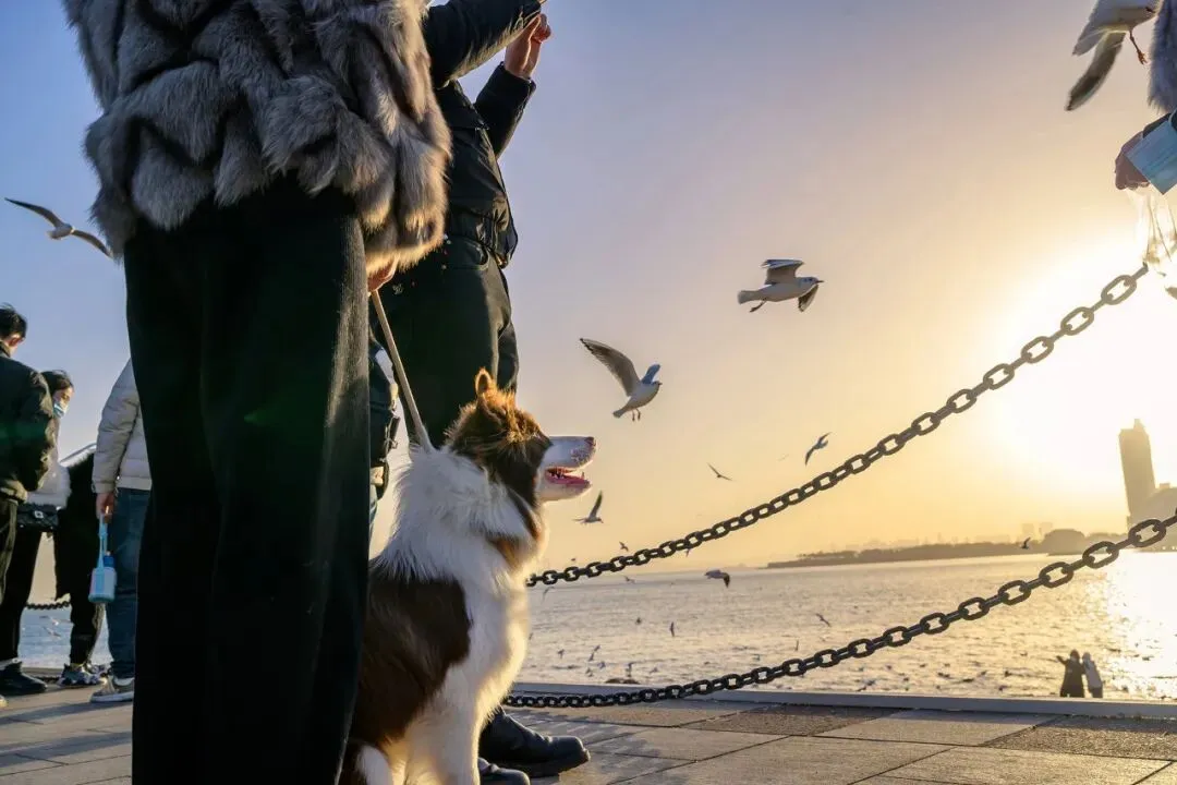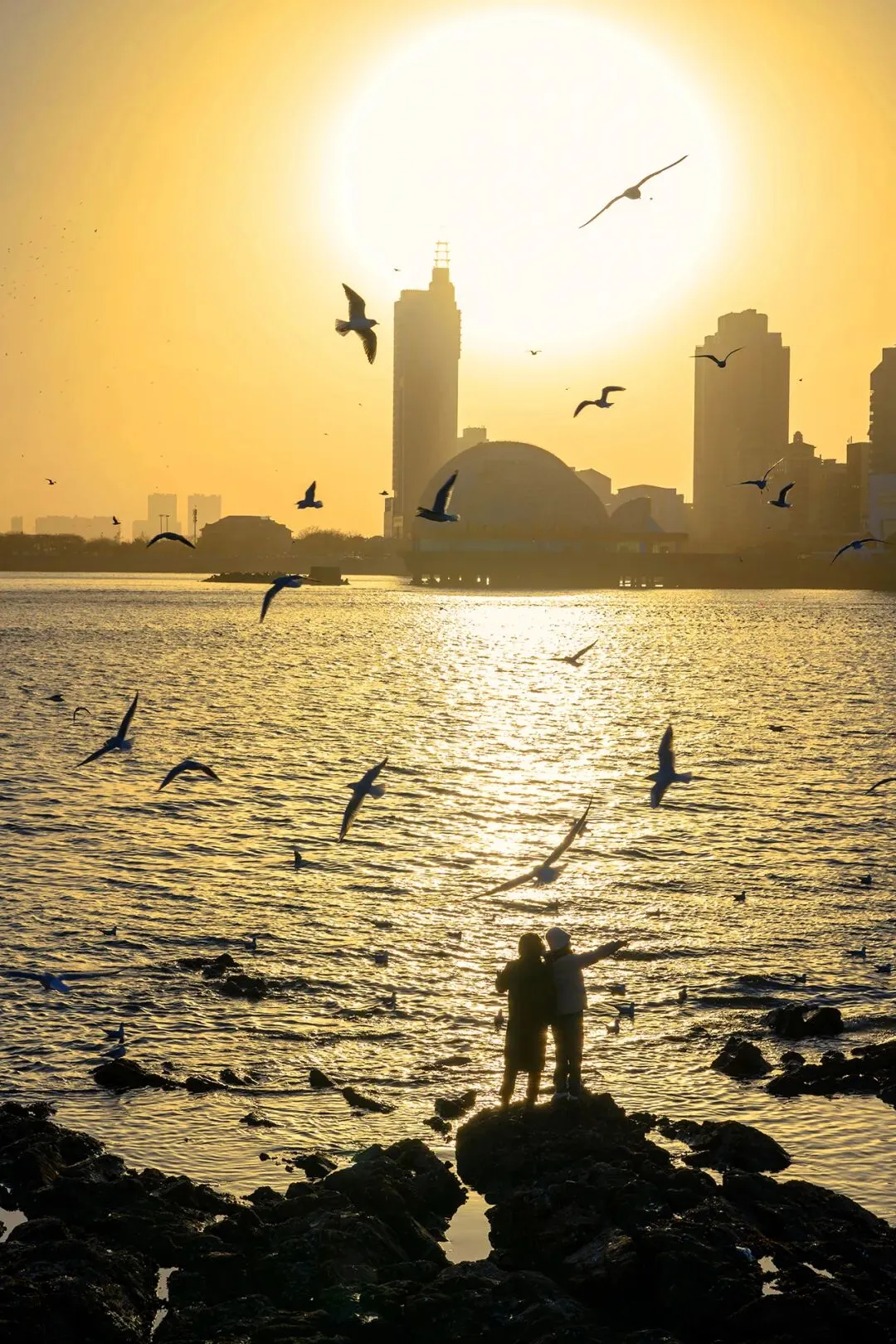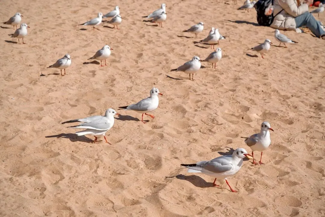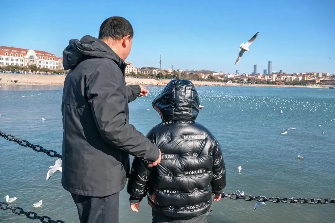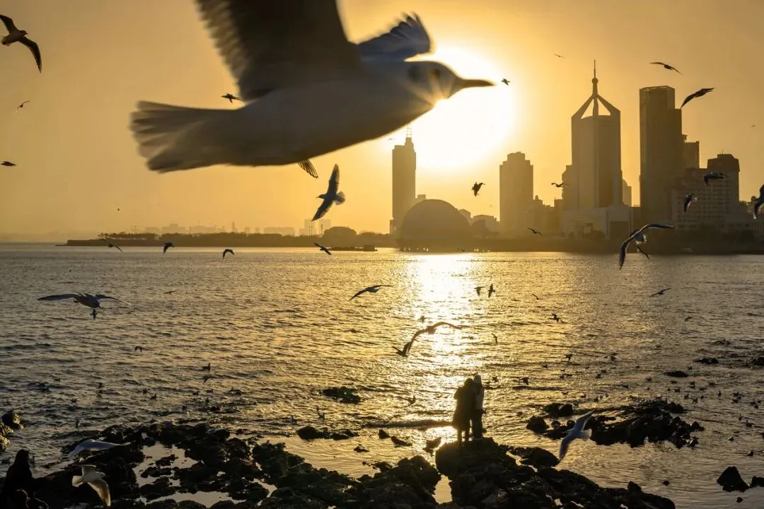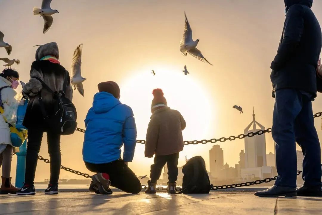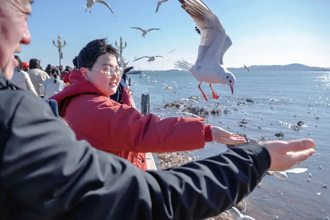 每年11月至次年3月,成千上万来自西伯利亚的海鸥会到青岛过冬,眼下正值海鸥聚集的高峰期。1994年起,青岛发起“挽留海鸥”行动,定时投喂饲料。当初,青岛湾仅约2000只红嘴鸥和银鸥,如今种群将近20个,数量超10万只。