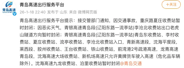 1月18日,青岛迎来降雪天气,青岛交管统计了市区几处特殊易滑路段,提醒市民谨慎出行: