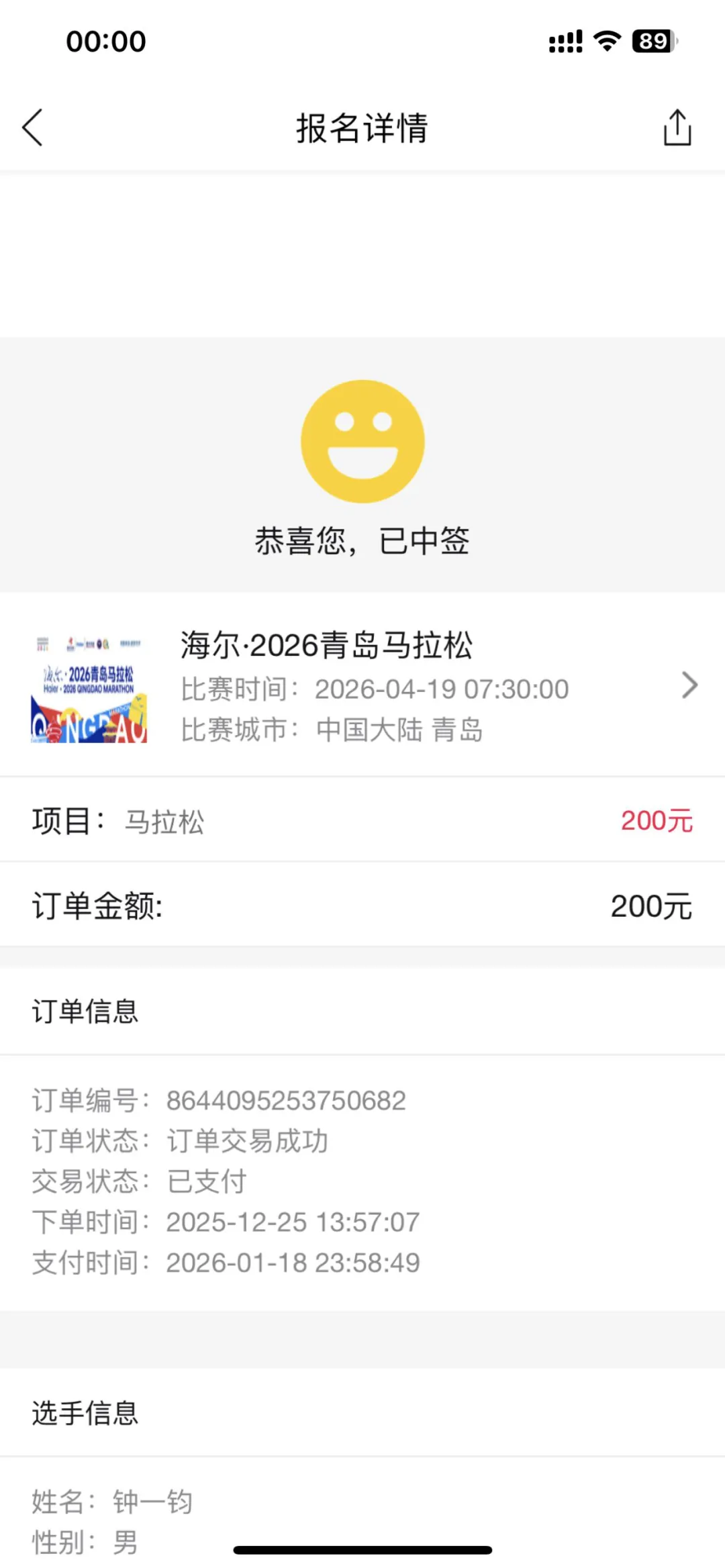 支付成功 确认跑青马