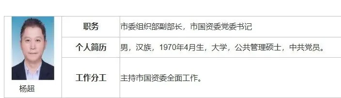 1月16日,青岛市第十七届人民代表大会常务委员会第三十二次会议通过,决定任命:杨超为青岛市人民政府国有资产监督管理委员会主任。