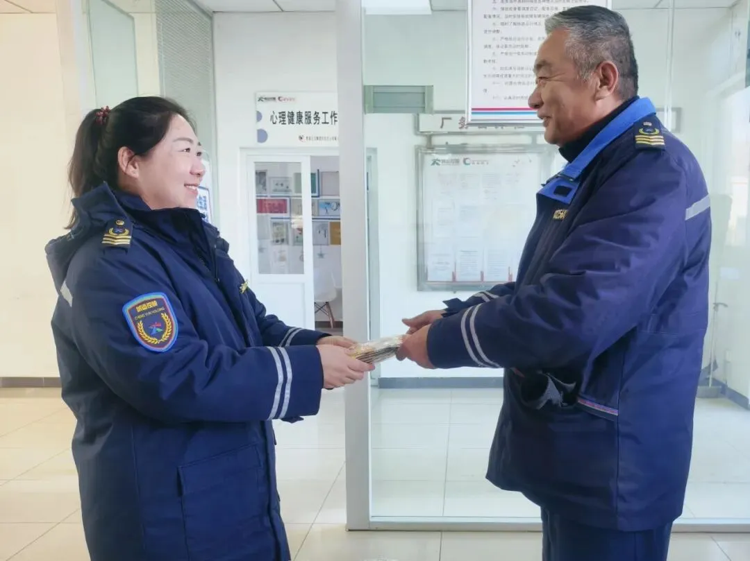 除了暖宝宝,后勤团队还提前检查了职工休息室的供暖设备,确保室内温度适宜,让职工在发车间隙能有一个温暖的休憩空间。同时备足了防滑手套、保暖围巾等物资,随时为有需要的职工提供补给,用细致入微的关怀,为一线职工筑起“移动的暖房”。