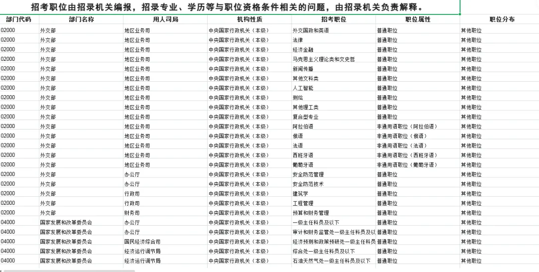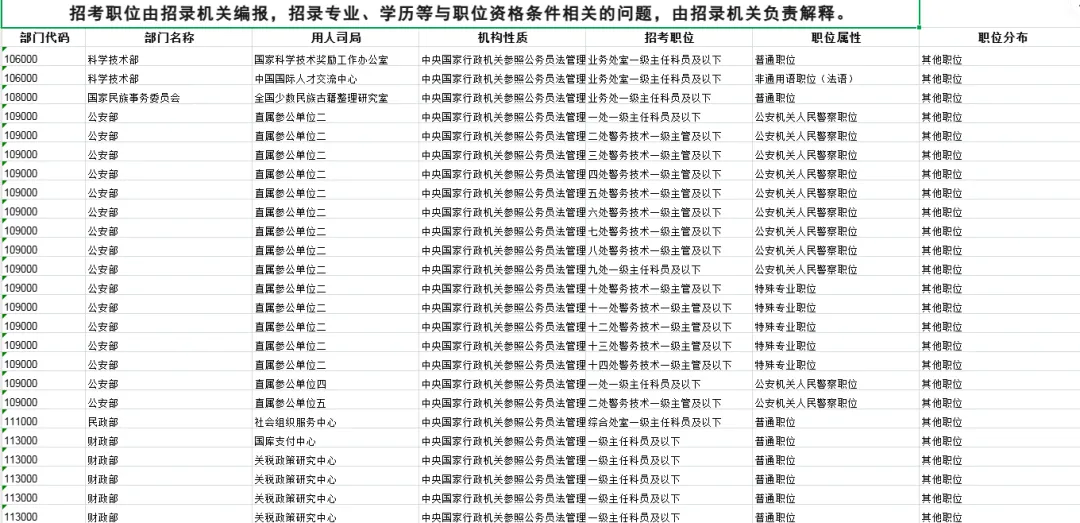 2026国家公务员考试职位表汇总【部门】