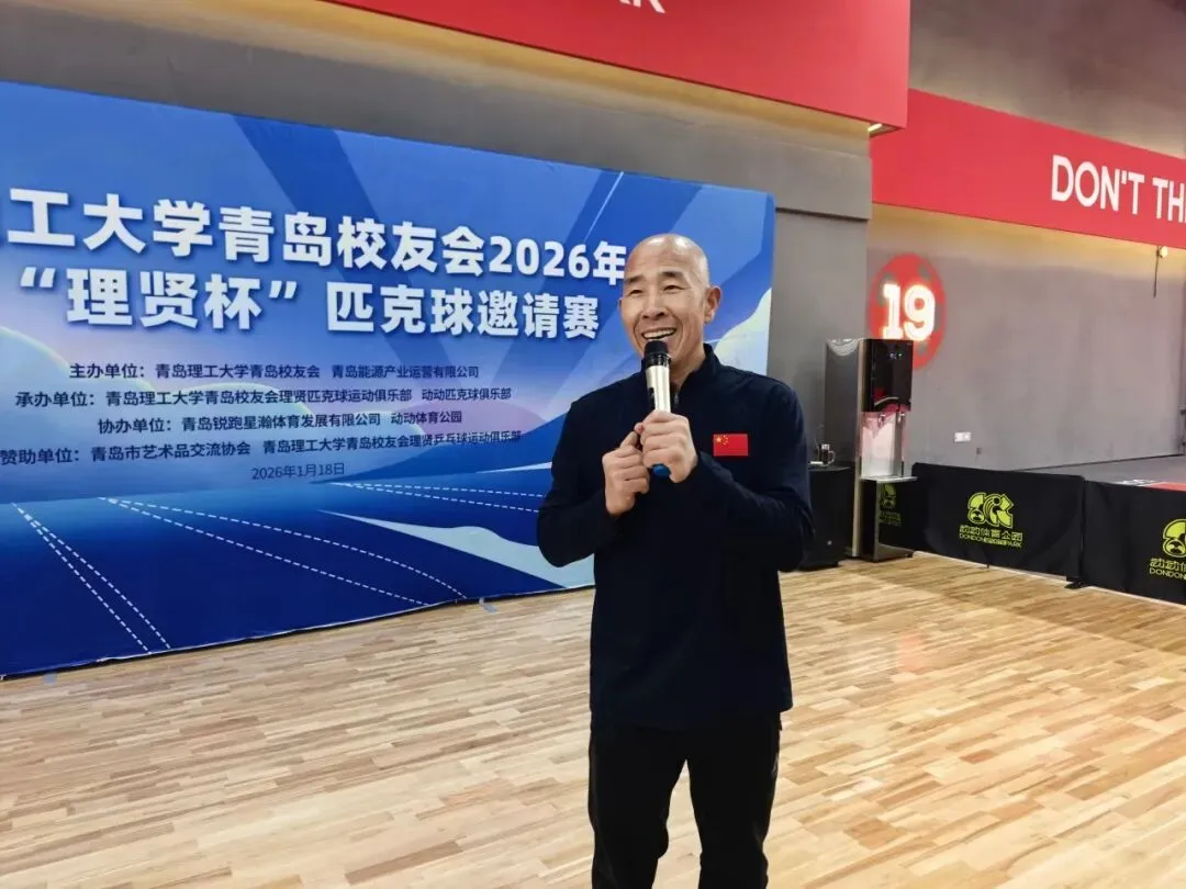 活动伊始,主持人张建忠(07级艺术学院校友)用热情洋溢的开场白点燃了现场气氛。校体育教学部主任鞠志强、青岛校友会会长龚洪、秘书长任志旭、理贤匹克球运动俱乐部主席孙国峰等领导和嘉宾亲临现场,为赛事助威。本次活动由青岛理工大学青岛校友会与青岛能源产业运营有限公司联合主办,理贤匹克球运动俱乐部与动动匹克球俱乐部承办,青岛市艺术品交流协会及青岛校友会理贤乒乓球运动俱乐部赞助,多方合力为校友们搭建了这座挥洒汗水、重温情谊的桥梁。