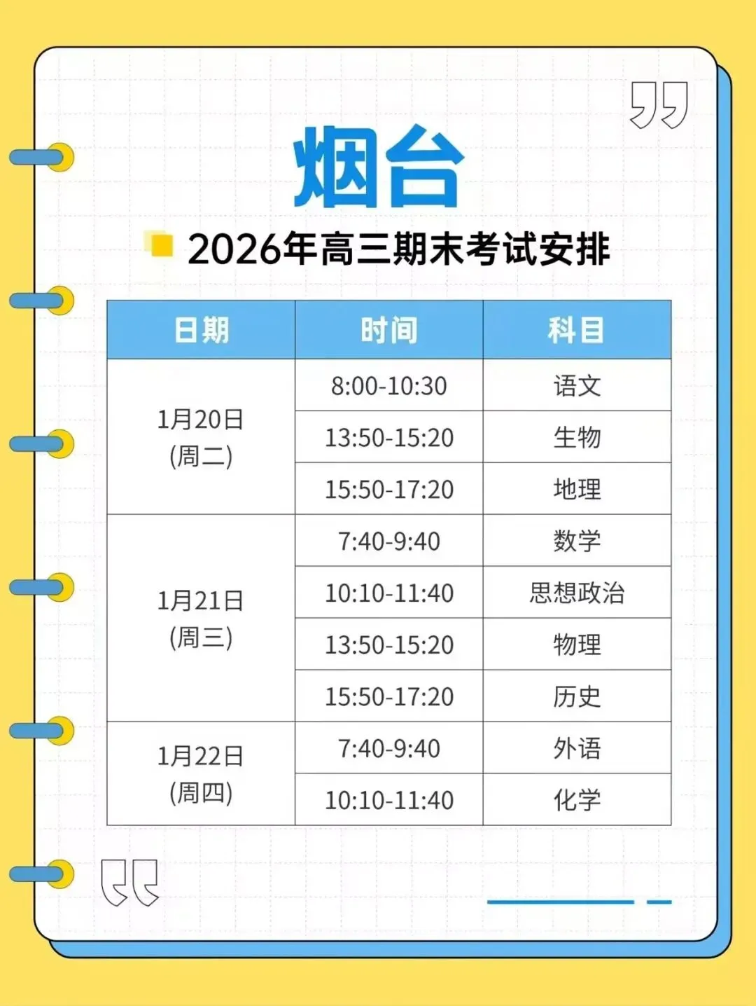 烟台市高三期末联考/烟台市2025一2026学年度第一学期期末学业水平诊断