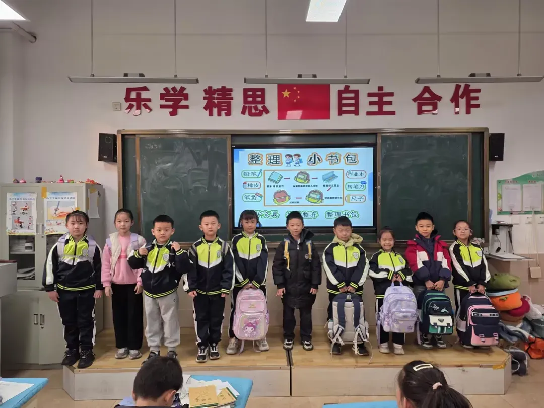 一年级测评聚焦基础自理能力,以“整理书包”为主题。学生专注分类课本、练习本,装入对应文件袋后再有序收纳文具,虽动作稚嫩但步骤条理清晰。活动有效强化了学生的收纳意识,为养成自主整理习惯筑牢基础。