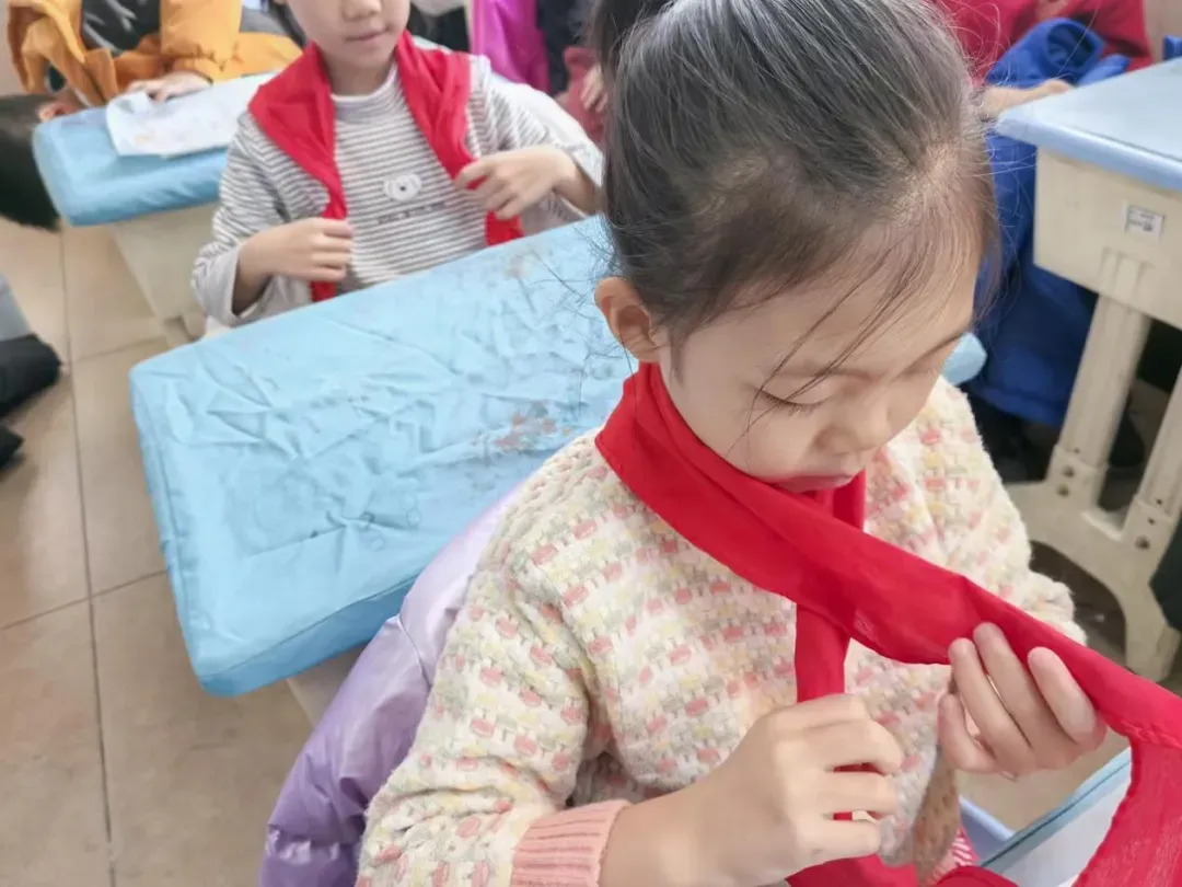 二年级围绕“系红领巾”展开测评,重点考察少先队礼仪规范。学生牢记“左尖压右尖、右尖绕一圈、圈里抽出尖”的系结要领,动作娴熟流畅,鲜红的红领巾在胸前整齐飘扬,学生不仅熟练掌握了技能,更增强了对少先队员身份的认同感与礼仪意识。