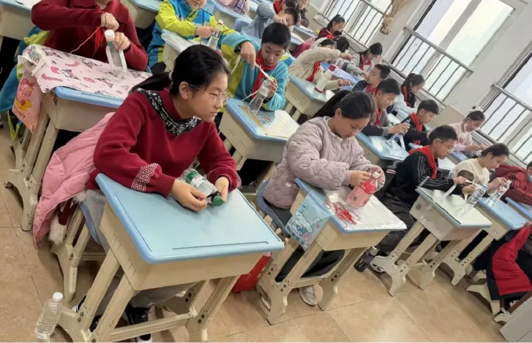 五年级围绕“绑瓶子打结”展开测评,要求用绳子将装水塑料瓶牢固绑定。学生们细心调整绳子位置、均匀缠绕、精准打结,反复检查牢固度。测评充分锻炼了学生的动手协调与细节把控能力,在实践中提升了复杂劳动技能的掌握水平。