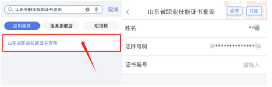 “爱山东”还提供山东省职业技能证书查询功能,取得证书的用户只需进入“爱山东”APP、支付宝、微信小程序,首页搜索“职业技能证书”进入服务,输入证书编号即可查询。