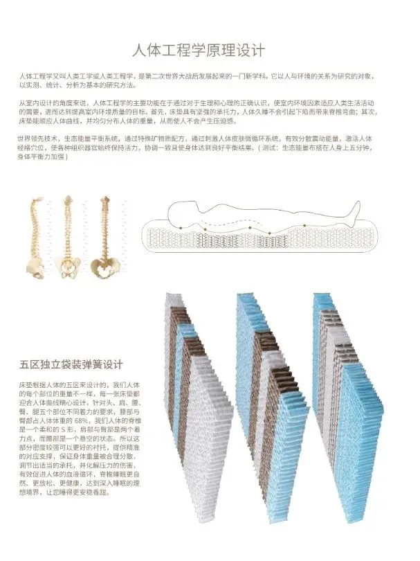 床垫设计是以人体工程学原理和健康睡眠理念为核心,白骑士床垫每一种原材料都必须经过反复研究,严格挑选,每一款床垫的设计 确保床垫的安全性,舒适性和实用性!