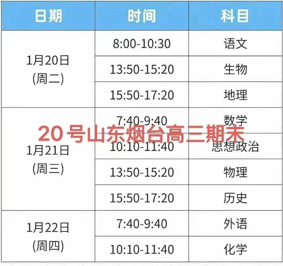 【考前爆料】1月20号山东烟台高三期末1月联考全科汇总完毕