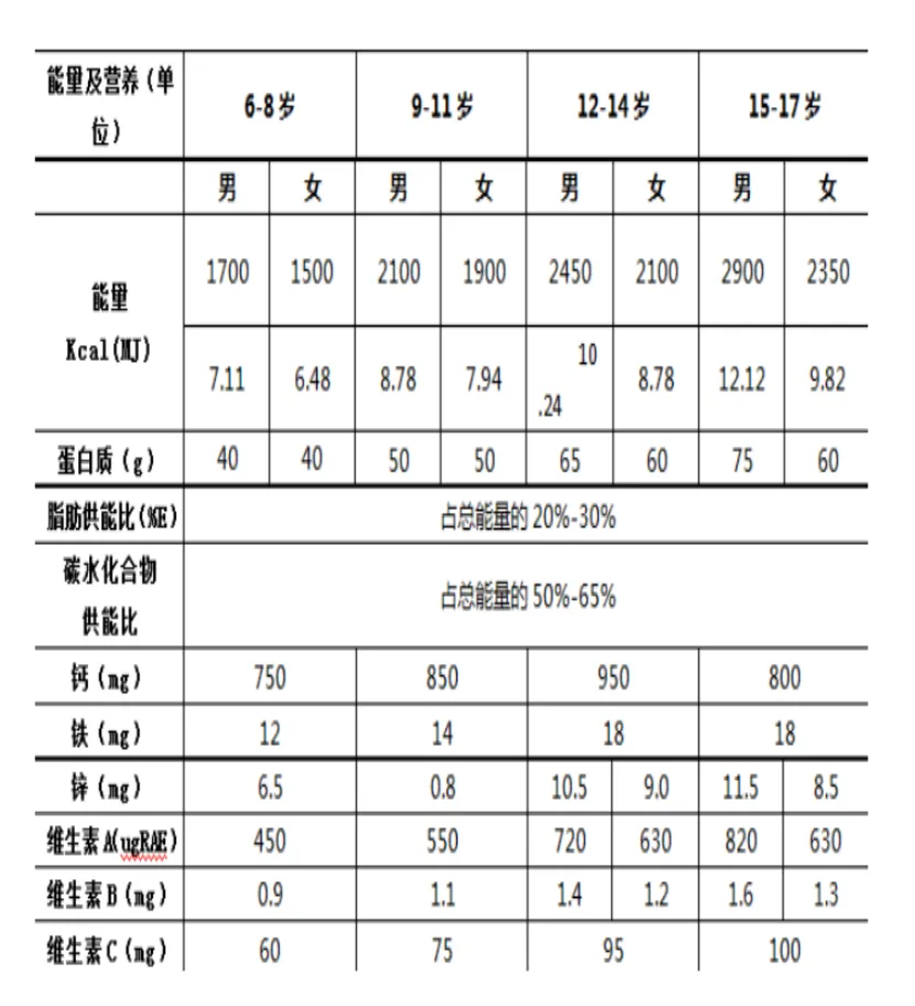 而对于学生每天营养素的摄取量标准,国家卫生行业标准(WS/T100-1998)制定的《学生营养午餐营养供给量》,则是我国中小学生营养午餐食谱设计的首要参照标准。