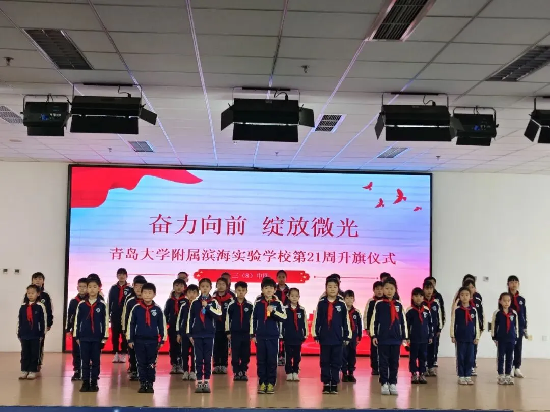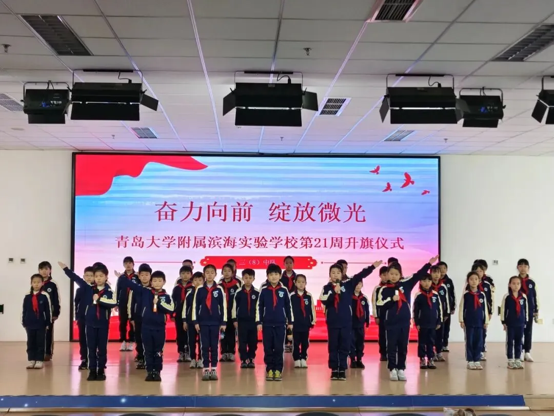 无需等待炬火,我们皆是那微光。人生的赛道从无捷径,唯有奋力向前,才能让平凡的自己绽放出属于自己的那束微光。学习从不是一蹴而就的事,是脚踏实地的坚持,课堂上专注的眼神,书桌前伏案的身影,都是队员们奋力向前的证明。青岛大学附属滨海实验学校举行了“奋力向前 绽放微光”主题升旗仪式,鼓励同学们全力以赴,绽放最耀眼的光彩。