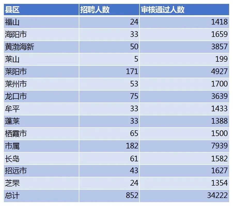 2025年烟台事业单位统考,共计招聘852人,3.4万人报名,平均竞争比40:1。