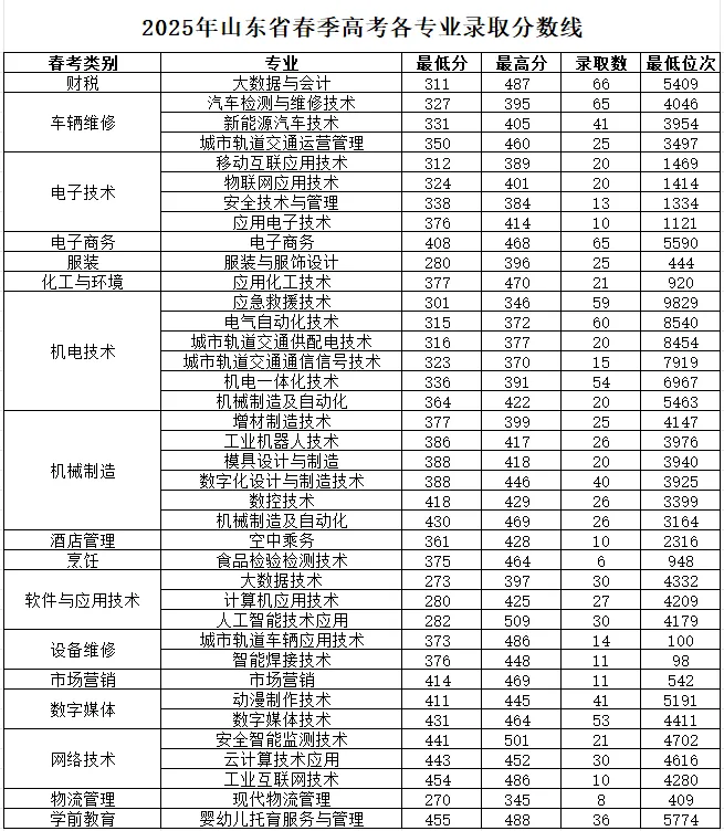 注意:山东省春季高考统一考试招生专业类别考试模板(2026版)
