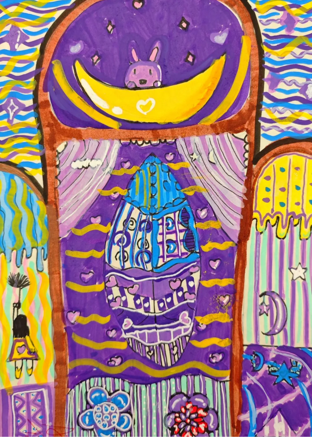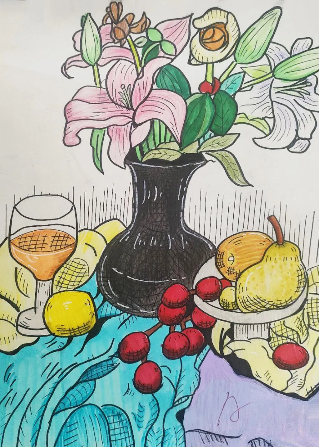 编者按:在美术课堂上,同学们用心观察、巧妙构思、大胆表现,用画笔传递艺术的想象,创造出了一件件色彩丰富、造型生动、创意多元、稚拙动人的作品。即日起,烟台学校美育公众号开设“美的作业”专栏,定期展示学生美术课堂优秀作品。让我们一起欣赏同学们“美”的作业吧!