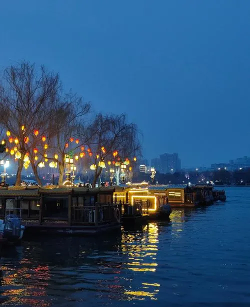 晚上,推荐去大明湖边的夜市。烤串摊把炉子烧得旺旺的,羊肉串滋滋冒油。来一碗把子肉,肥瘦相间,酱油味浸得透。喝口扎啤,看湖面灯影晃动。