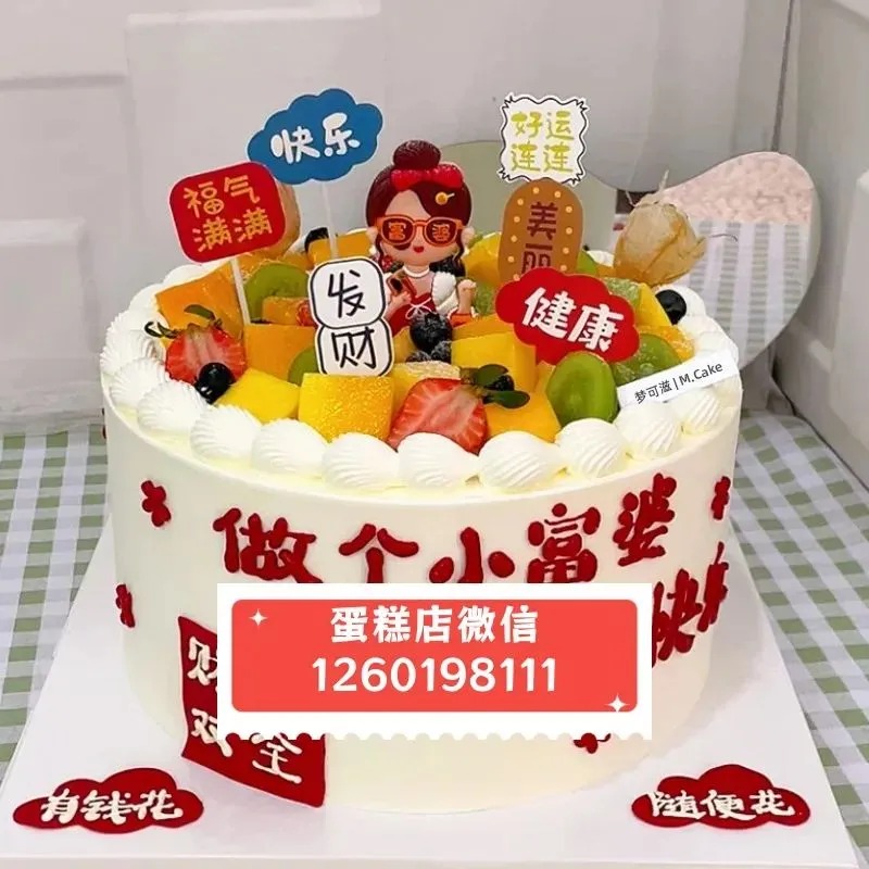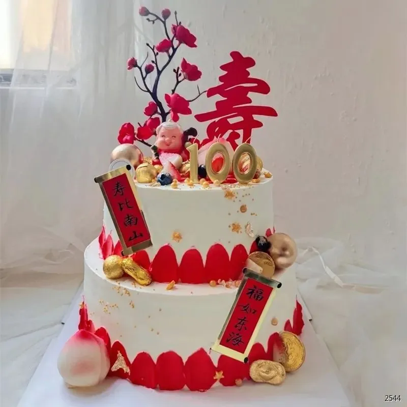 祝寿蛋糕:长辈的生日,是我们表达孝心和感恩的时刻。我们的祝寿蛋糕以传统的红色为主色调,搭配寿桃、福字等元素,寓意着健康长寿、幸福美满。口感上也是充分考虑了长辈的喜好,松软香甜,不油腻,就像长辈对我们的关爱,细腻而深沉。当长辈看到这样一份充满心意的蛋糕,脸上洋溢着幸福的笑容,那是我们最想看到的画面。