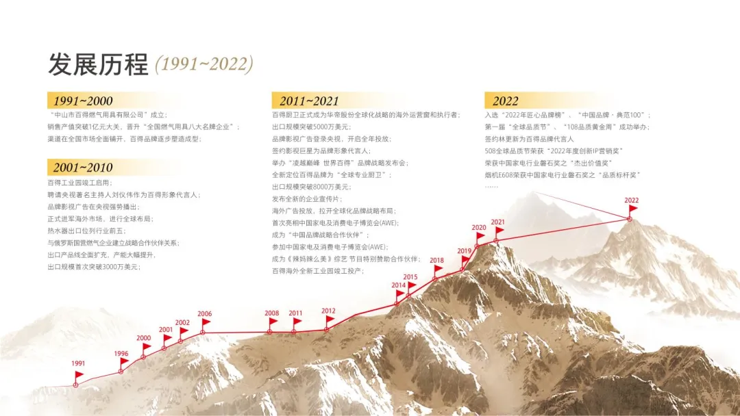 中山百得厨卫有限公司1991年创立于广东中山,专注专业厨卫33年,坚持以专业、品质、实用、创新为企业发展核心动力,从中国知名厨卫品牌,稳步成长为具有国际影响力的全球专业厨卫品牌。