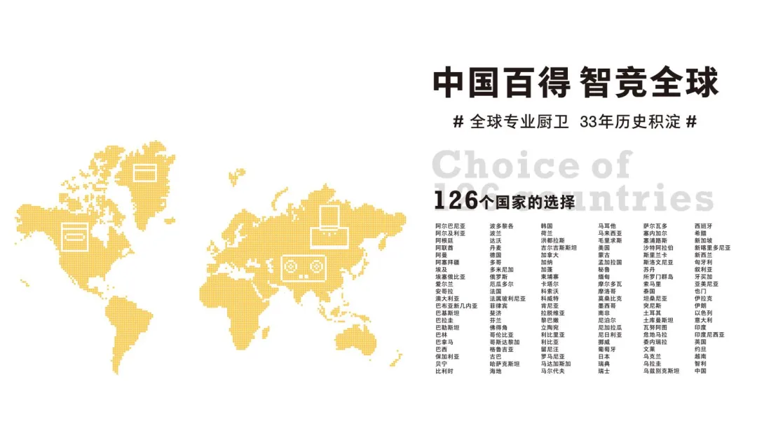 如今,百得厨卫以专业沉淀的信赖品质,和同步世界的产品创新,畅销126个国家和地区,逐步成为屹立世界的中国品牌。