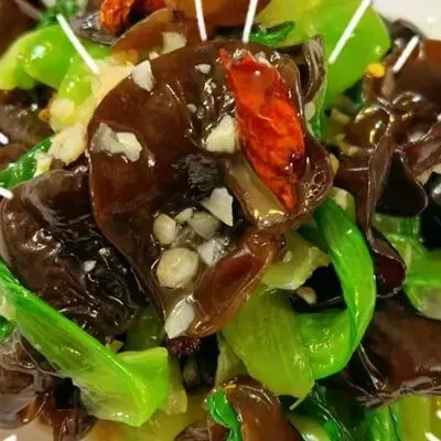 家常炒土豆丝、冲油双耳油菜