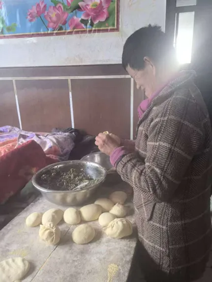 这次送温暖,电话没能接通,我们便直接驱车赶往家中。刚推开院门,屋里的孩子们就像小雀儿似的蹦了起来,一声声清脆的招呼,瞬间驱散了冬日的寒意。更让我们欣喜不已的是,一向精神状态特殊的妈妈,竟正坐在桌前包包子!揉面、擀皮、捏褶,动作熟练又利落,蒸笼里氤氲的热气,裹着面香扑面而来。