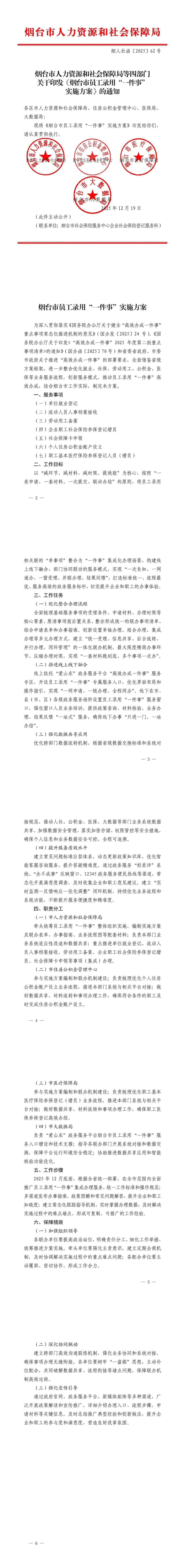 烟台市员工录用“一件事”实施方案