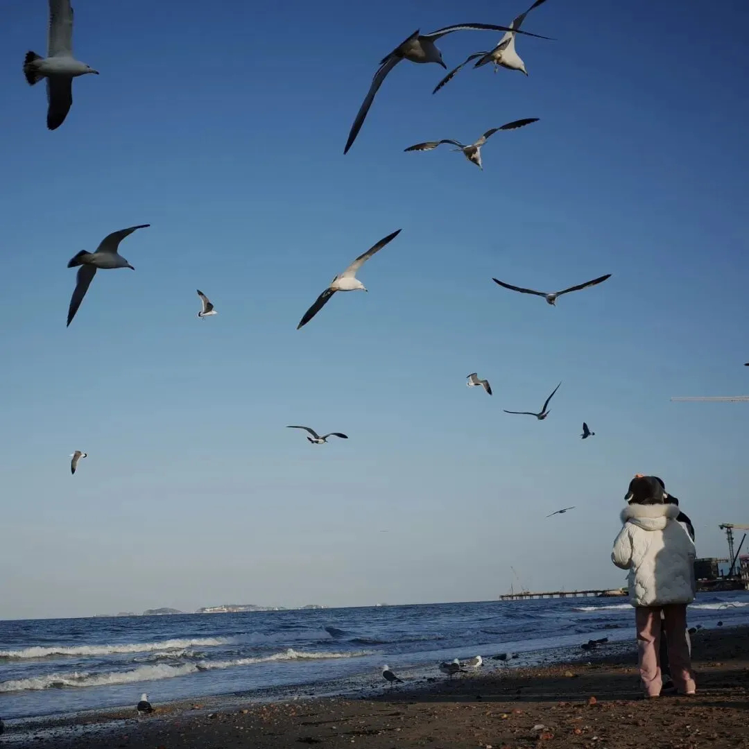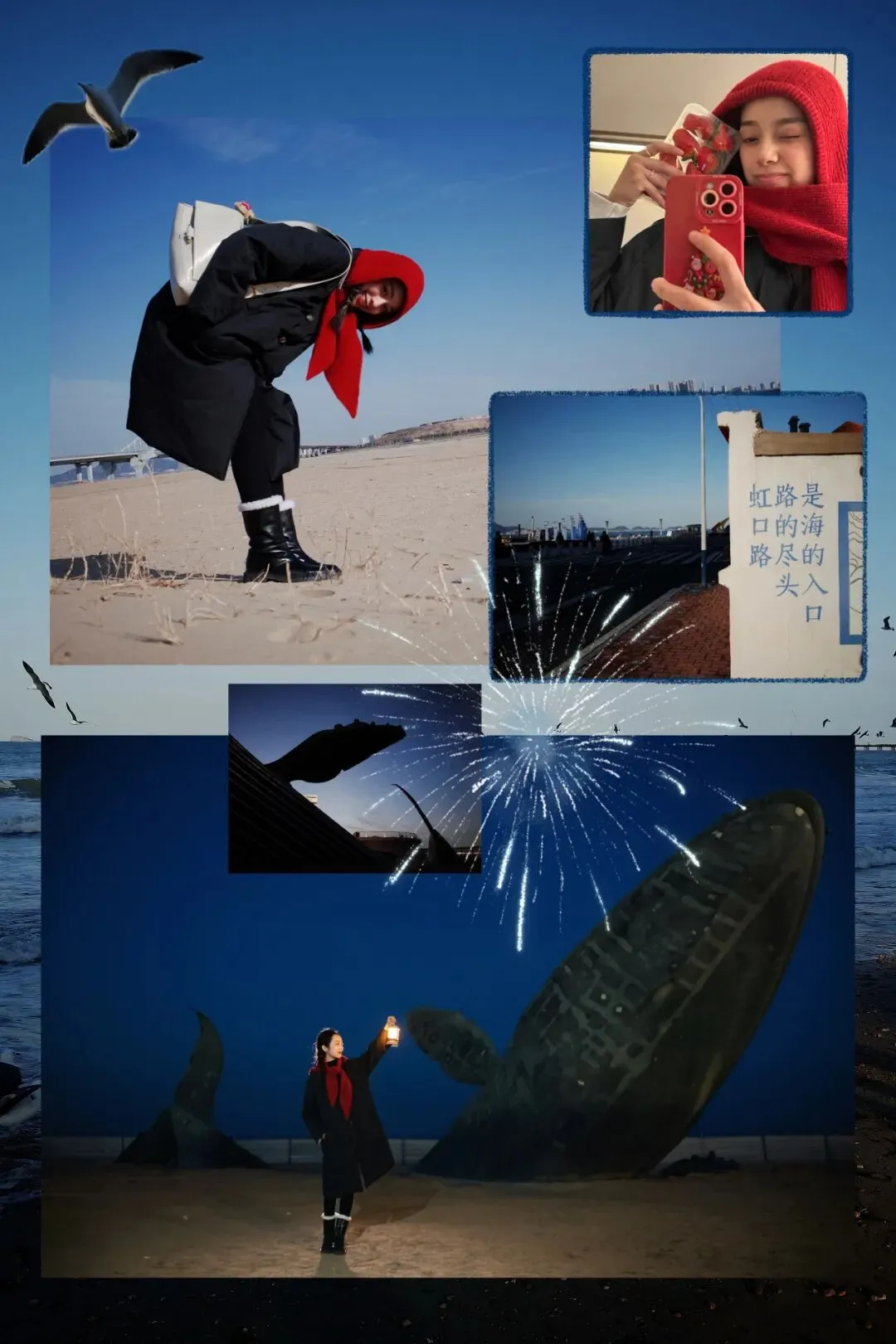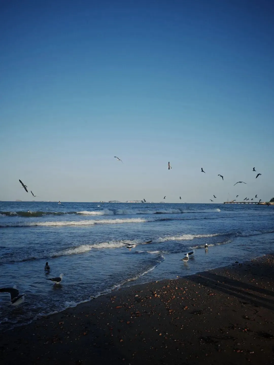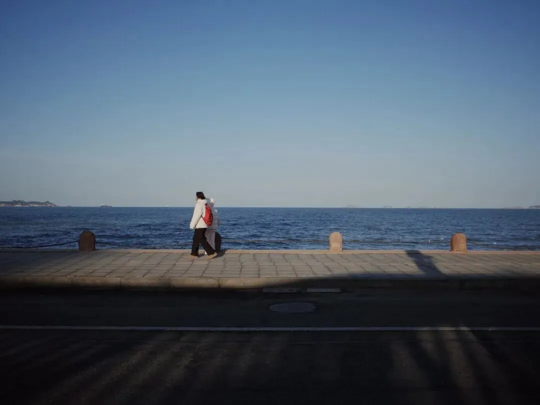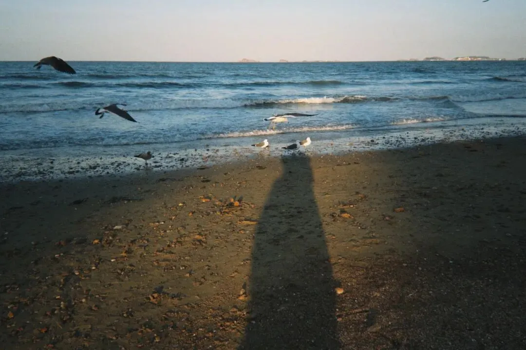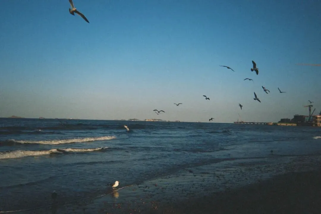 自驾让人更快熟悉了这座城市的地理版图,也意外停驻了一些之前未计划前往的街区。原本对虹口路大苹果不感兴趣,结果在日落前意外开上了虹口路旁的海边单行道,看到第一海水浴场上空成群结队的海鸥正在与金色夕光嬉戏,下一秒我便决定寻找停车位。这里是游客聚集地,是万物的游乐场,游客扬起手中的饲料引来海鸥扑腾的画面,海鸥享用晚餐后滑着优雅的轨迹回到白色浪花顶端轻轻一点。游人的眼光带着玫瑰色滤镜,日常的甚至陷入旅行模版的景观,只要在合适的时机抵达,其实也很有味道。