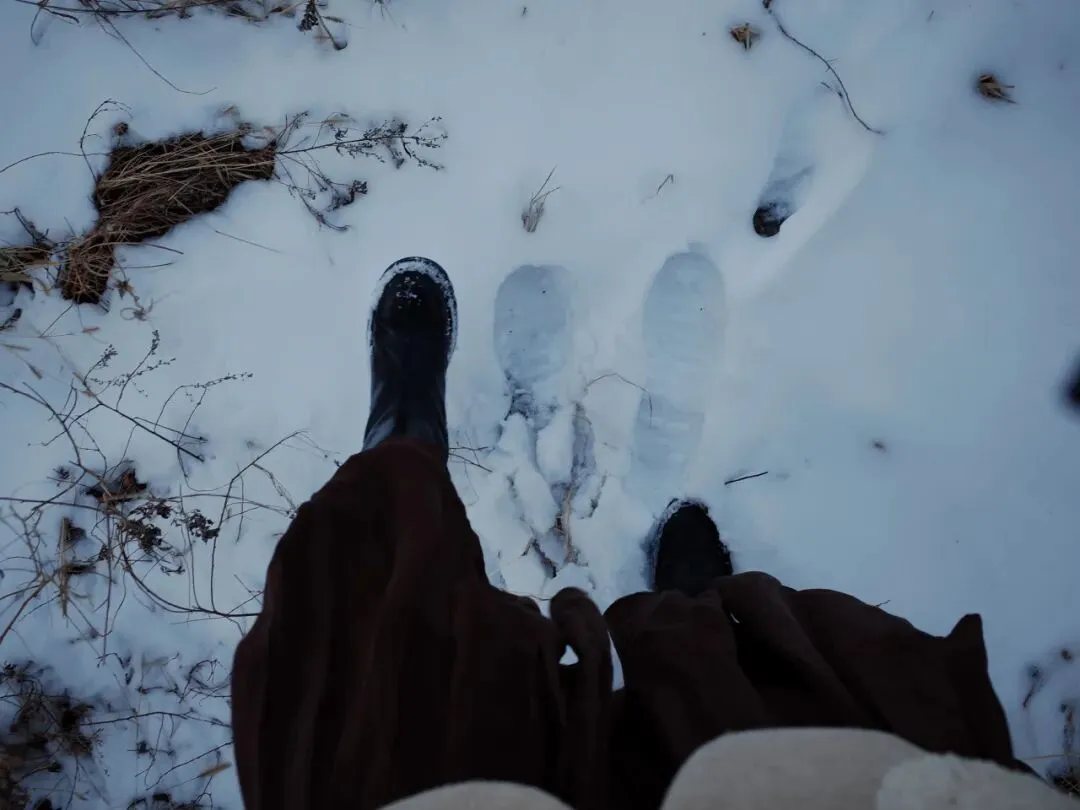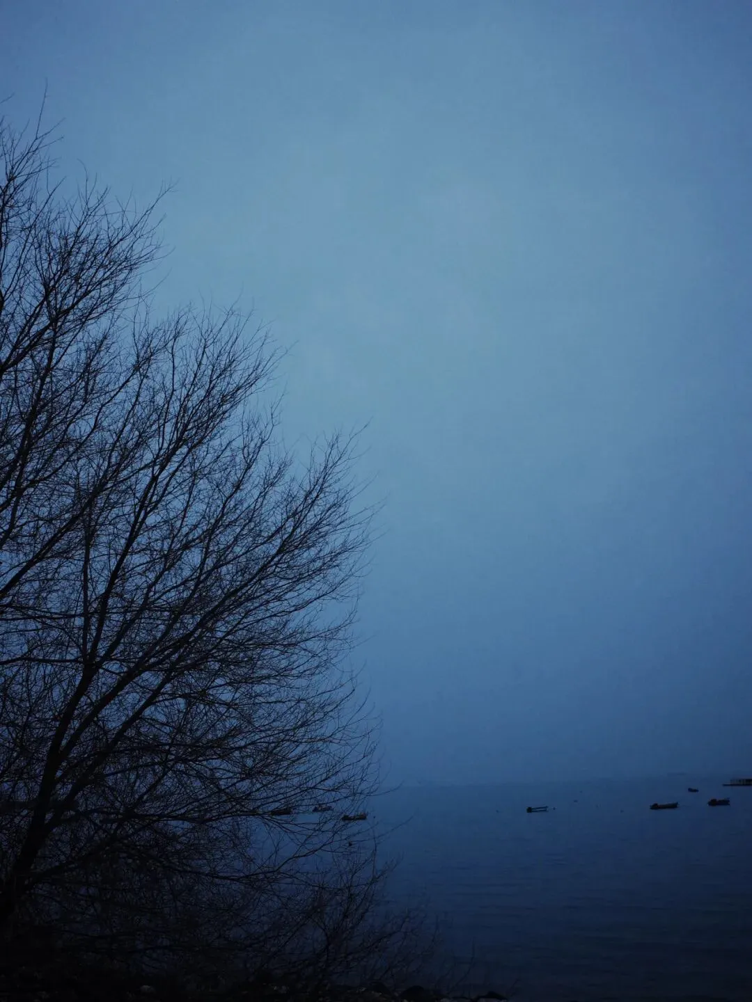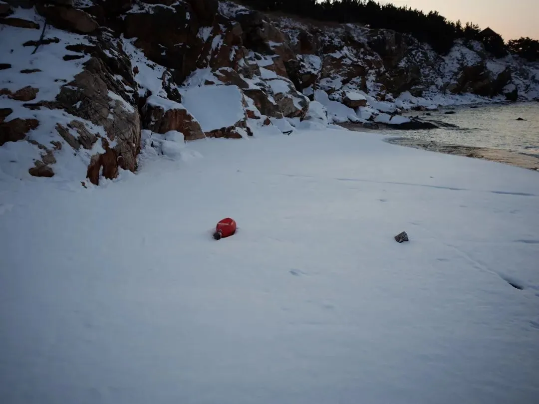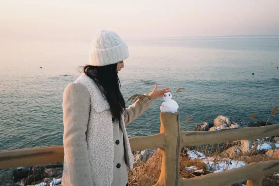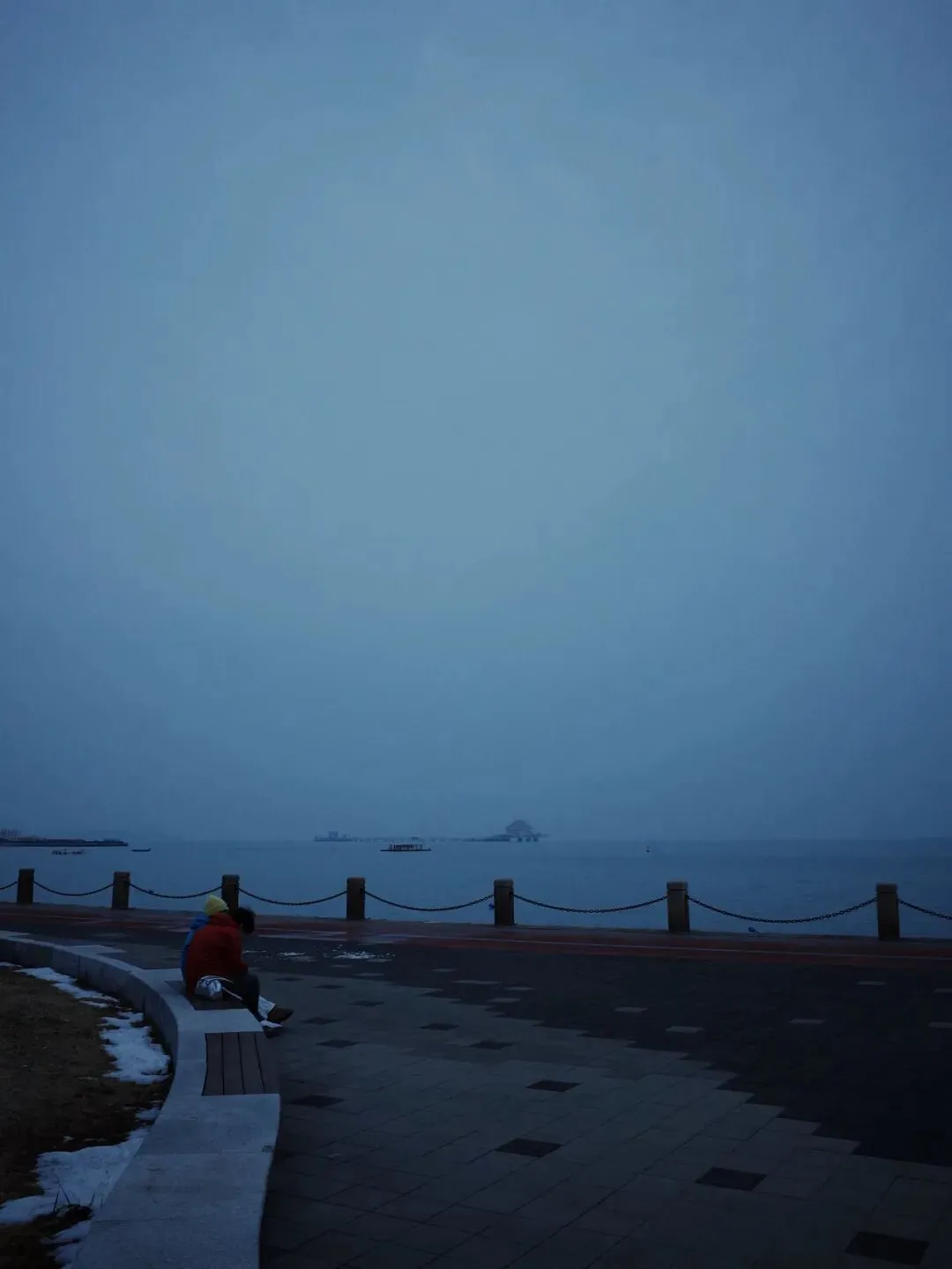积雪正在消融,养马岛上的沙滩变成雪原,海水与天空把蓝调也投向了雪地,穿着靴子一路踏过去的声音很好听,顺带留下一串深蓝的脚印。