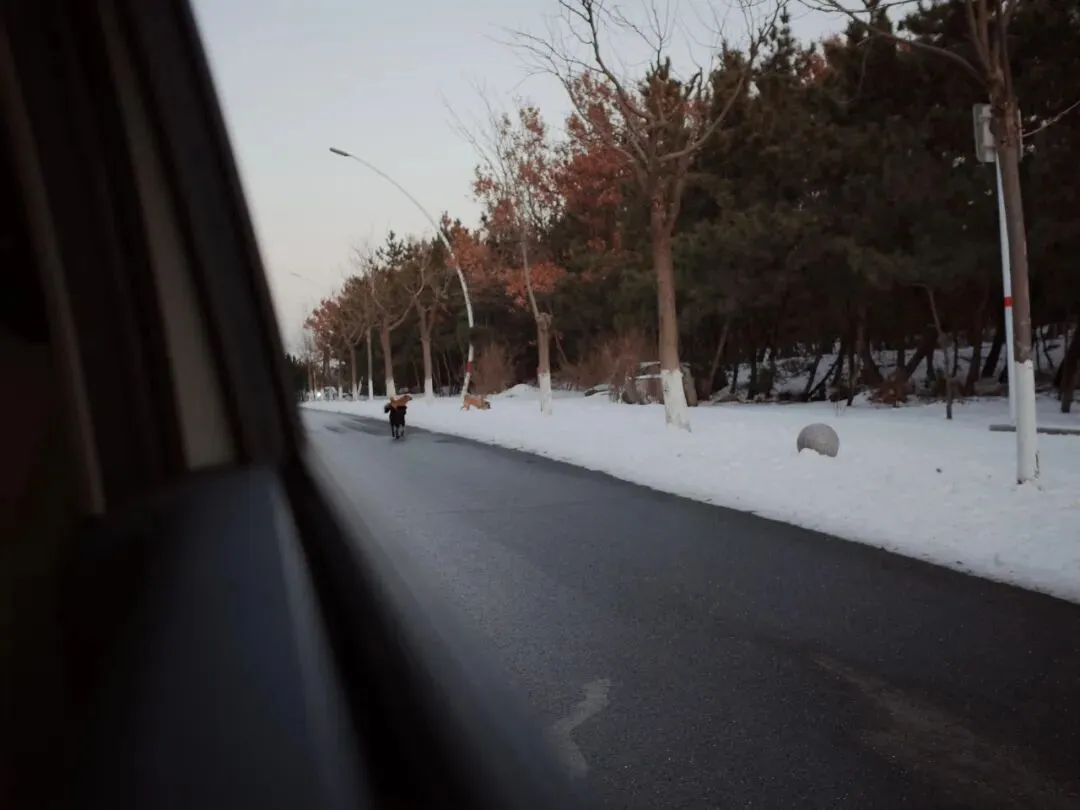 我的脚底沾满泥沙与雪粒,车里放着《海边日落》,放着《一颗苹果》,放着刘森的歌,我欢呼着冲上夹河大桥,今天不是什么节日,今天没有满月,没有好事发生也没有坏事发生,但生命应当充满庆祝,庆祝一天的结束管它圆满或遗憾,庆祝沿途遇到的所有生命,庆祝道路尽头粉紫色的天空,庆祝随着疾驰而被抛在身后的黑夜。